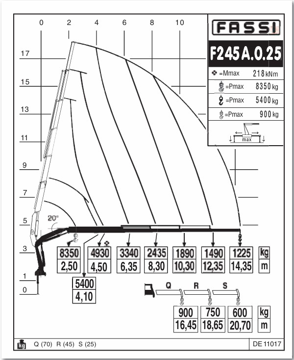 Udskudforlængelse (hydraulisk): 5 ( 14,35 m 1225 Kg)