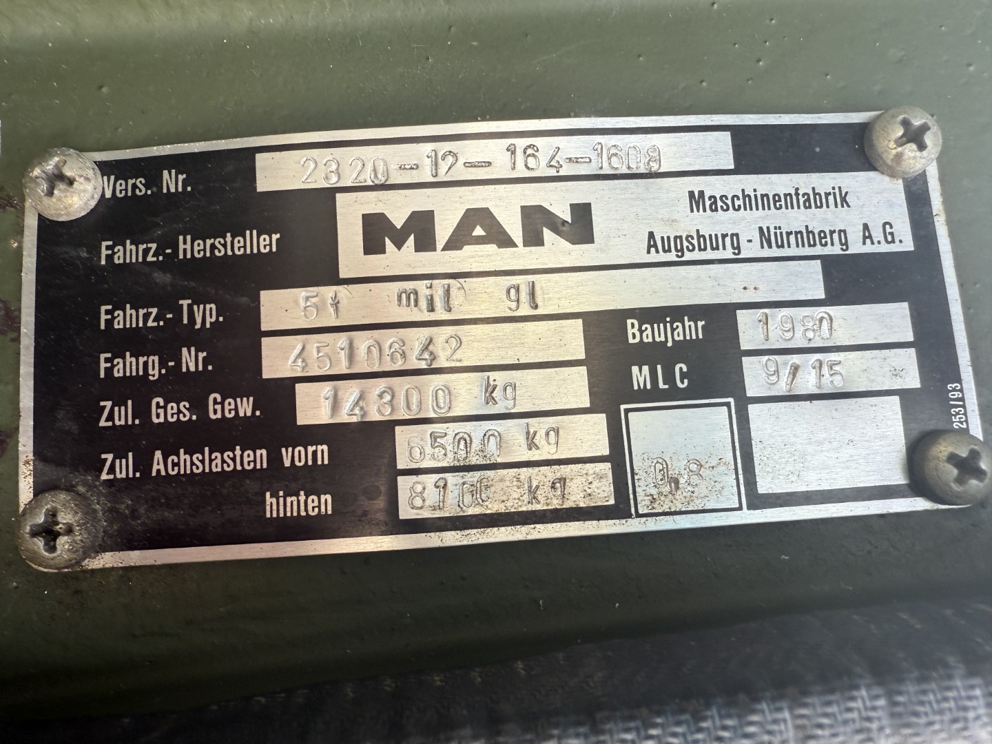 Totalvægt: 14300 kg.