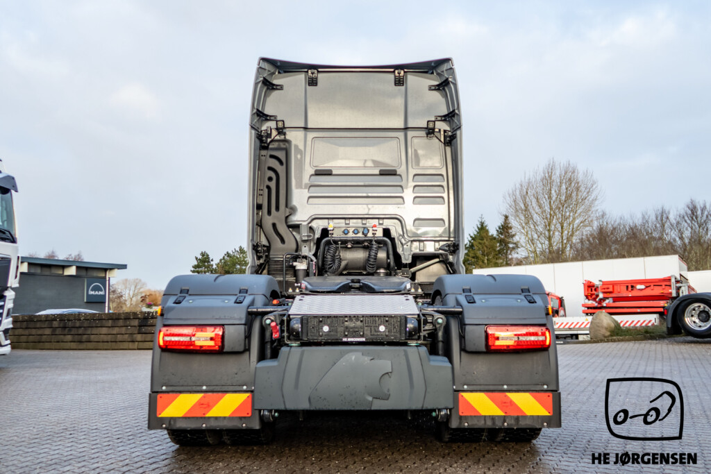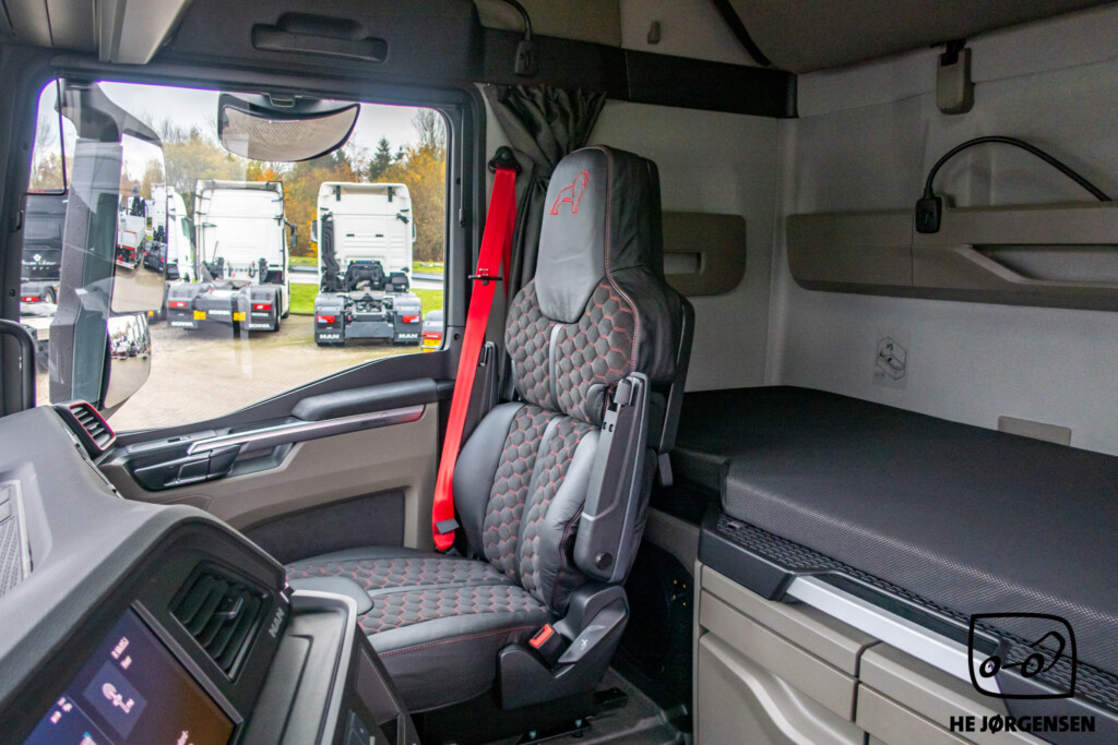 Så har vi igen fået en MAN TGX Individual Lion S på lager, denne gang en pusher-trækker! Individual Lion S'en er bl.a. udstyret med elektronisk glassoltag, el-indstilbare sidespejle med varme, sædevarme, digital instrumentering, TipMatic automatgearkasse med ny gearvælger ved rattet, adaptiv fartpilot, lane-assist, cyklist censorer i både venstre og højre side, elektronisk intelligent håndbremse og SmartSelect - som er den nye styreplatform, som styrer MAN’s radio, navigation mv. samt distraherer dig mindre fra trafikken end en sædvanlig touchskærm. Lion S interiøret består bl.a. af premiumsæder med læder/alcantara-indtræk og diamantsygninger samt nakkestøtter med løveapplikation, røde sikkerhedsseler som skaber et sportsligt look, luftåbninger med røde rammer, indersiderne af døre og armlæn er beklædt med materiale i læderlook, multifunktionslæderrat med røde syninger som understreger det sportslige look, kromlister i dørene og meget mere! I kabinen byder den største MAN-førerkabine, GX på maksimal komfort, både under arbejdet og i pauserne. MAN'ens ydre består bl.a. af spejlkapper med kulfiberlook og løve-design, mørkegrå designsolskærm med Individual Lion S-signatur, skinnende sorte hjulkapsler, kofanger i kulfiberlook med røde detaljer, sortlakeret kølergrill samt den iøjnefaldende kølergrill med forkromede lameller og røde designstriber. MAN'en er opbygget med fuld aludørk samt forskydelig drejeskammel. Trækkeren er fra MAN's nye generation og står klar til omgående levering. Kontakt vores salgsafdeling for yderligere information og interesse. Vi glæder os til at vise den frem! *Der tages forbehold for eventuelle taste fejl*