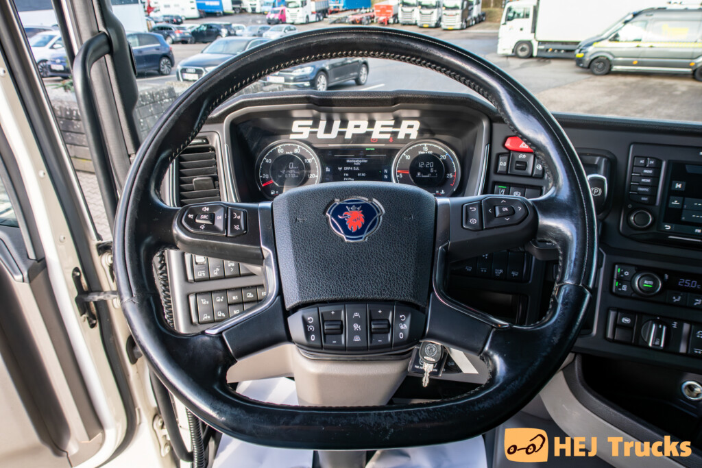 Så har vi igen fået en V8 på lager! Denne gang en Scania R580 boogie-trækker med 580 hestekræfter. Scania'en er opbygget med fuld aludørk, kangaroo gitter i fronten, retarder, fuld luftaffjedring, diverse LED-arbejdslygter, fuld LED-forlygter, luftforskydelig JOST drejeskammel og en LED-Blitzbro. Af udstyr i den fine Scania finder vi bl.a. multifunktionslæderrat med adaptiv fartpilot, køl og varme i førersædet, lane- og hill-assist, fuld automatisk klimaanlæg, det store Scania premium infotainment system med navigation, el-betjent glassoltag, mikroovn samt kaffemaskine, tabletholder og meget mere! Kunne denne R580'er være noget for dig, så er du velkommen til at kontakte vores salgsafdeling for yderligere information. *Der tages forbehold for eventuelle taste fejl*.