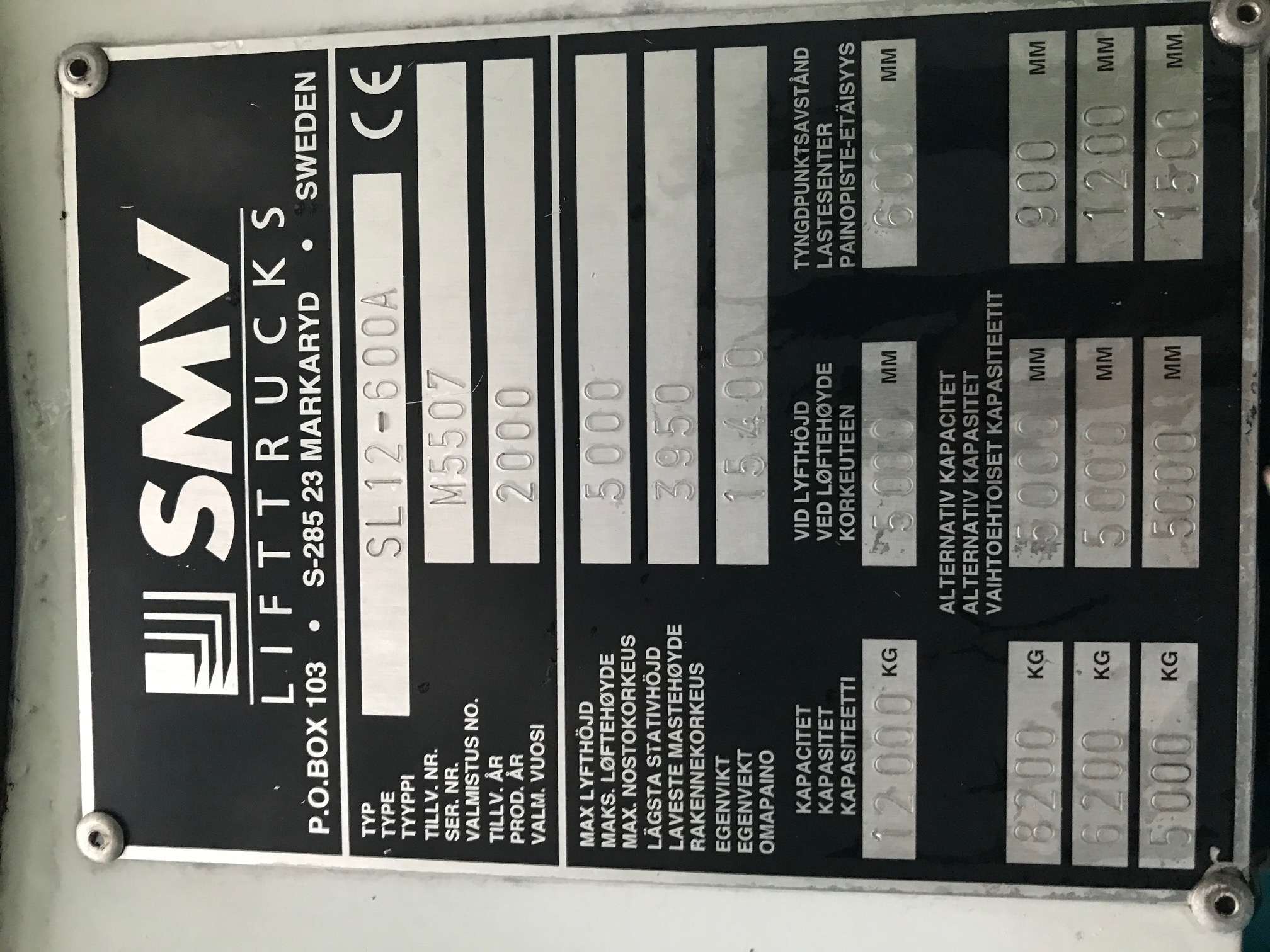 Kapacitet - 13.000 kg på 600 mm