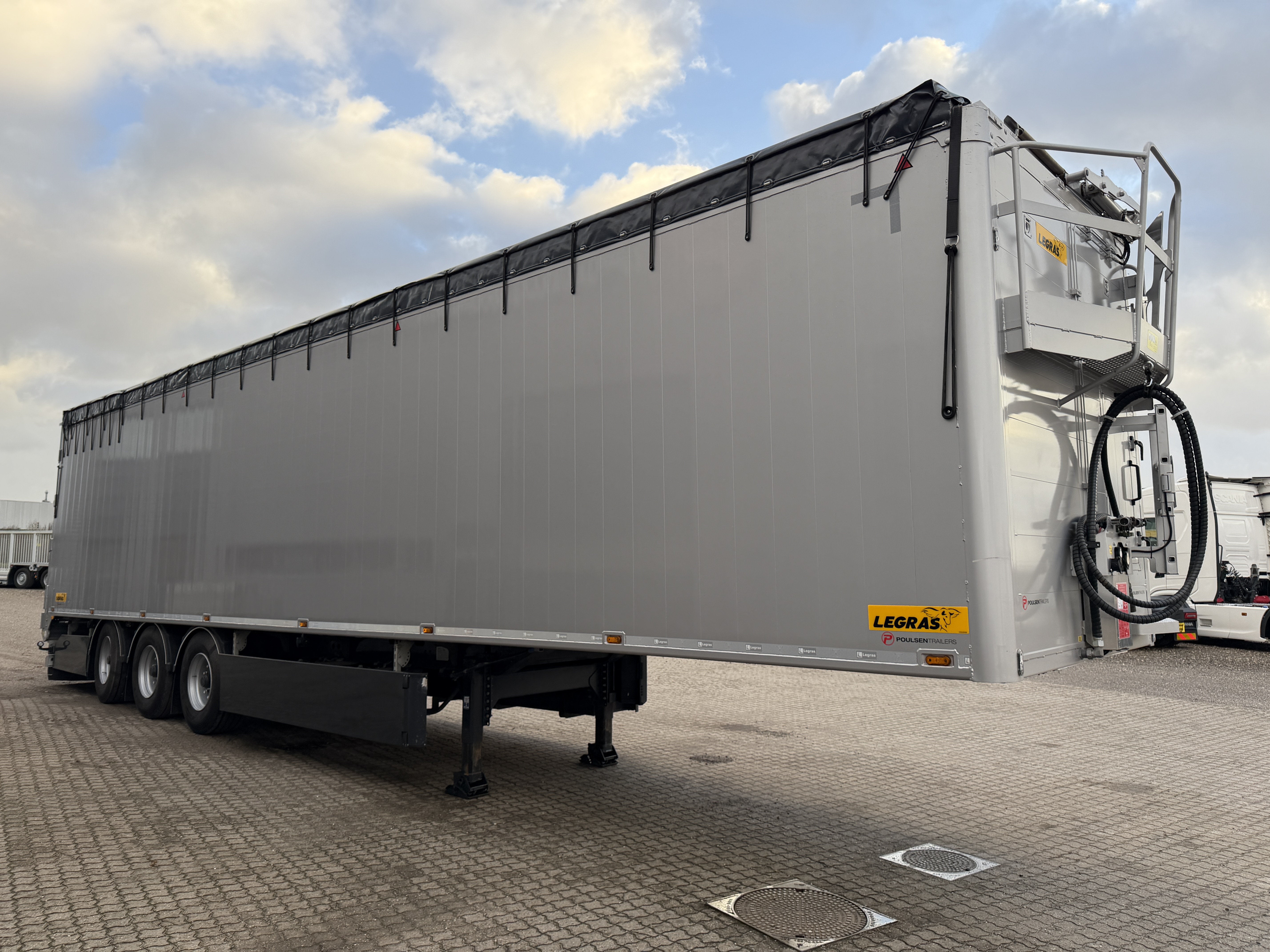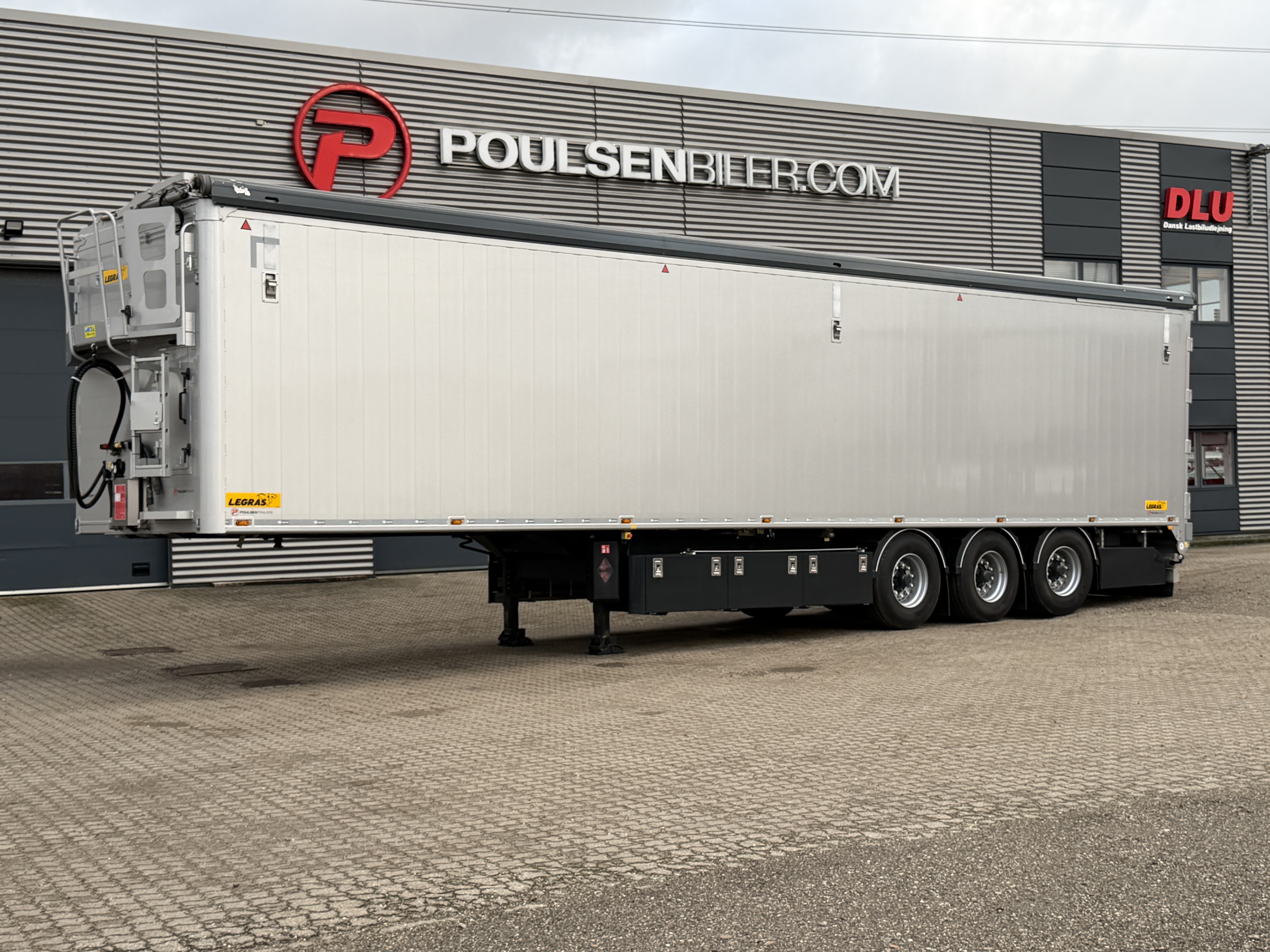 Alternativt til nyt - her tilbydes en LEGRAS 3-akslet 91 m³ walkingfloor trailer, med hydraulisk løftbar overlægger og EcoTop.