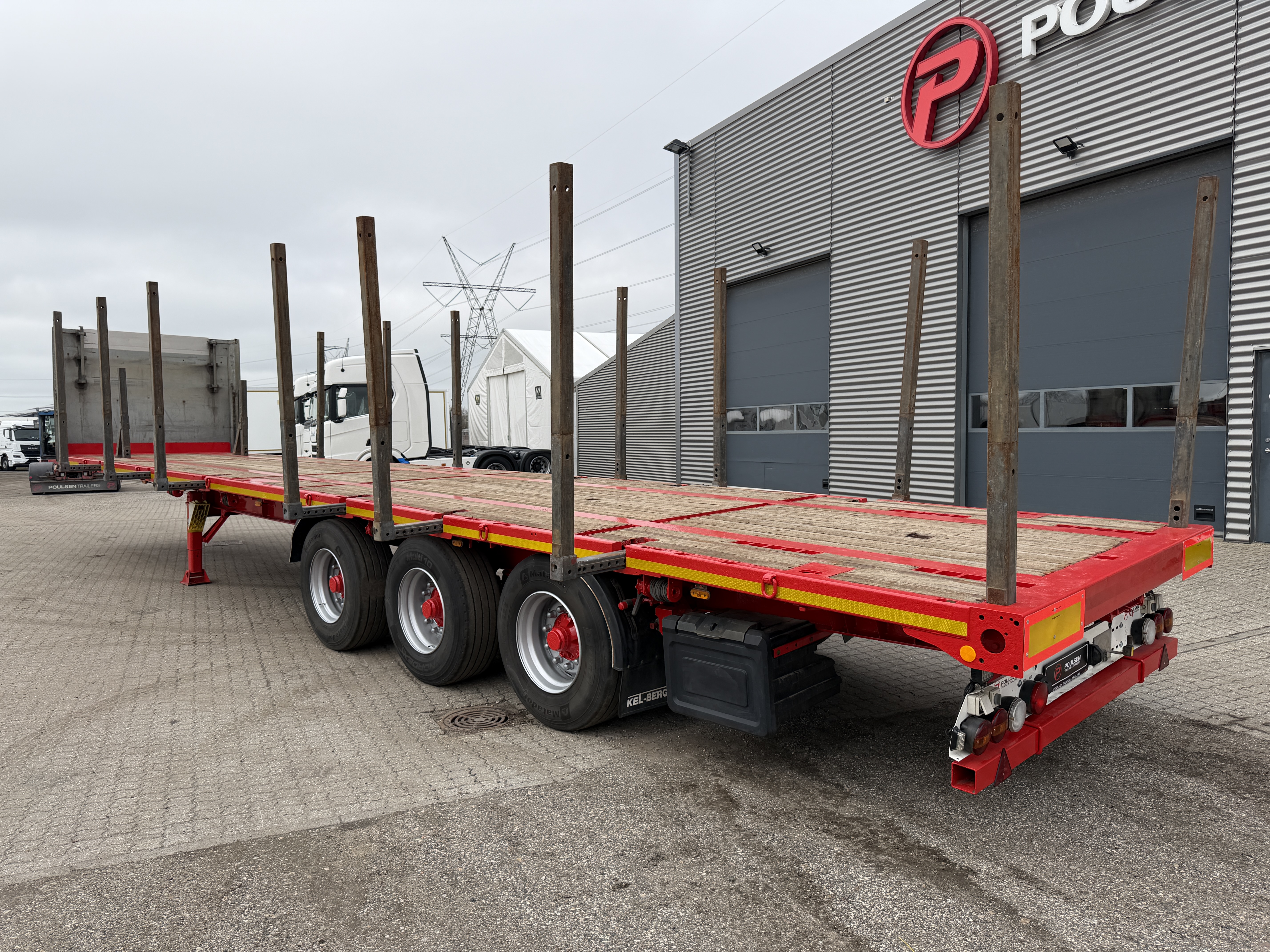 Kel-Berg 3-aks åben ligeud trailer med udtræks-kæpstokke