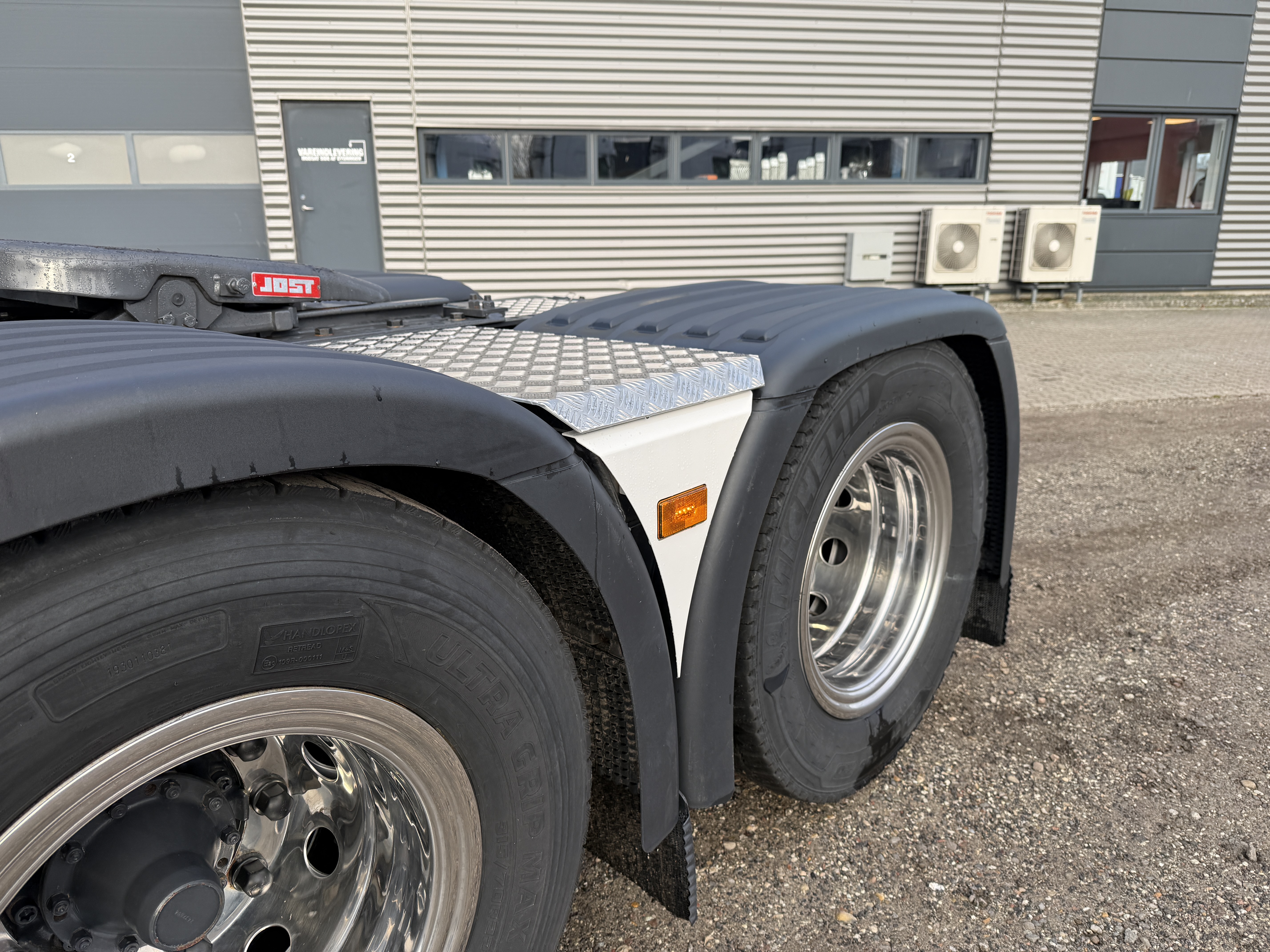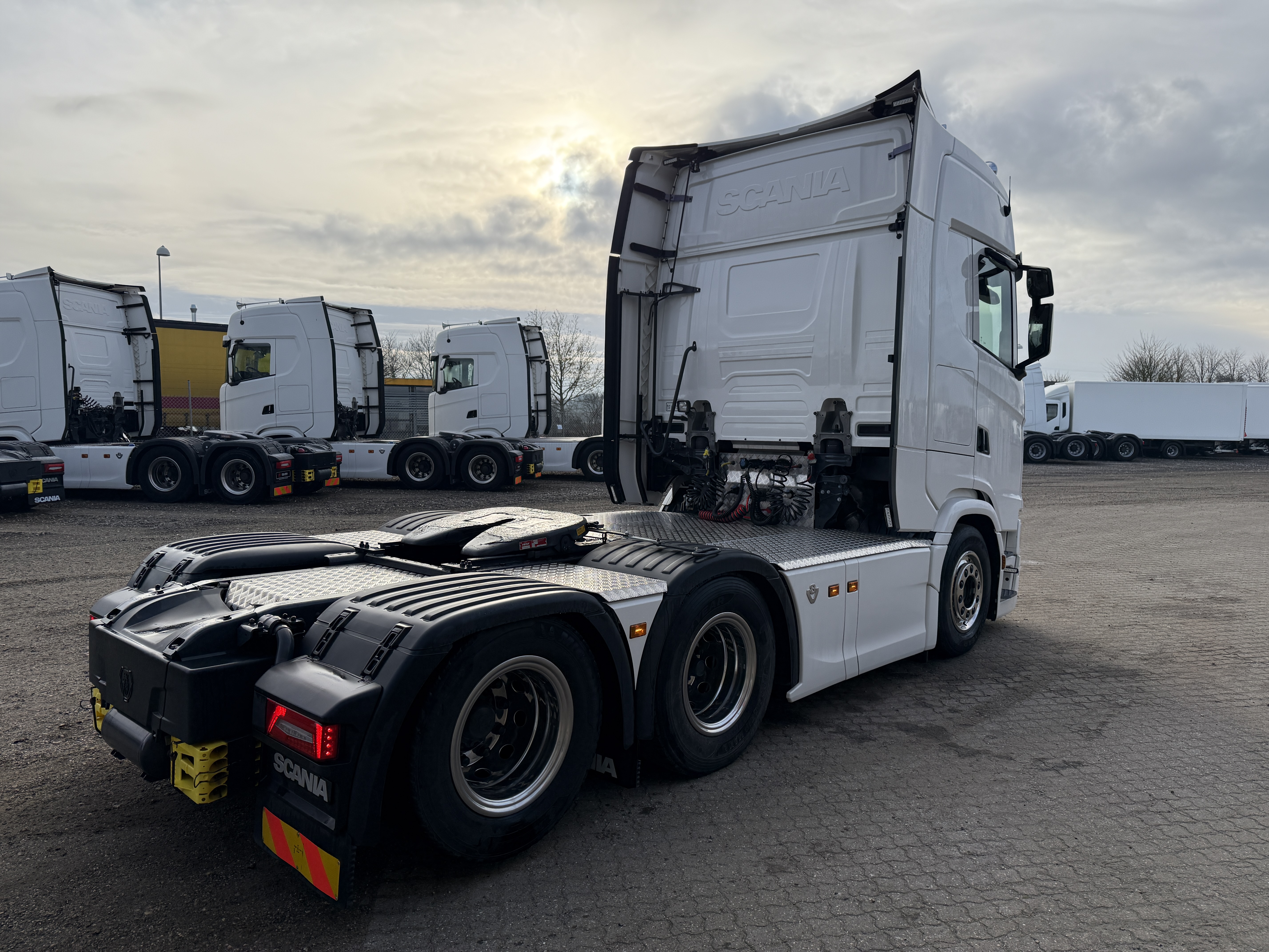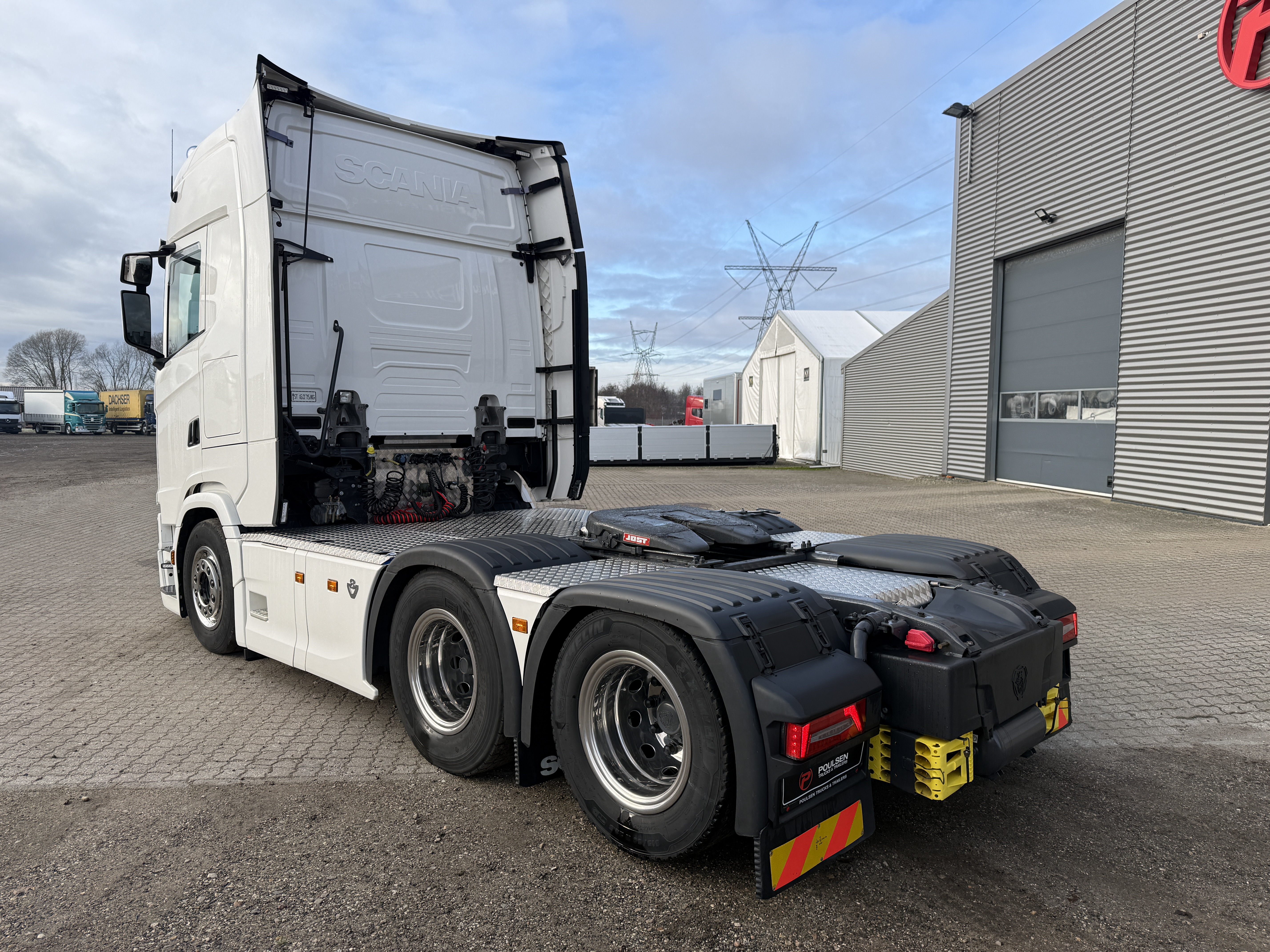 Scania S660 6x2 V8 hydrauliktrækker er indregistreret i November 2023 og har kørt 173.000 kilometer. Køretøjet er udstyret med et nyt hydrauliksystem, som er kompatibelt med både tipper og walkingfloor. Derudover er der monteret ny aludørk og Nato-stik, samt en luftforskydelig skammel