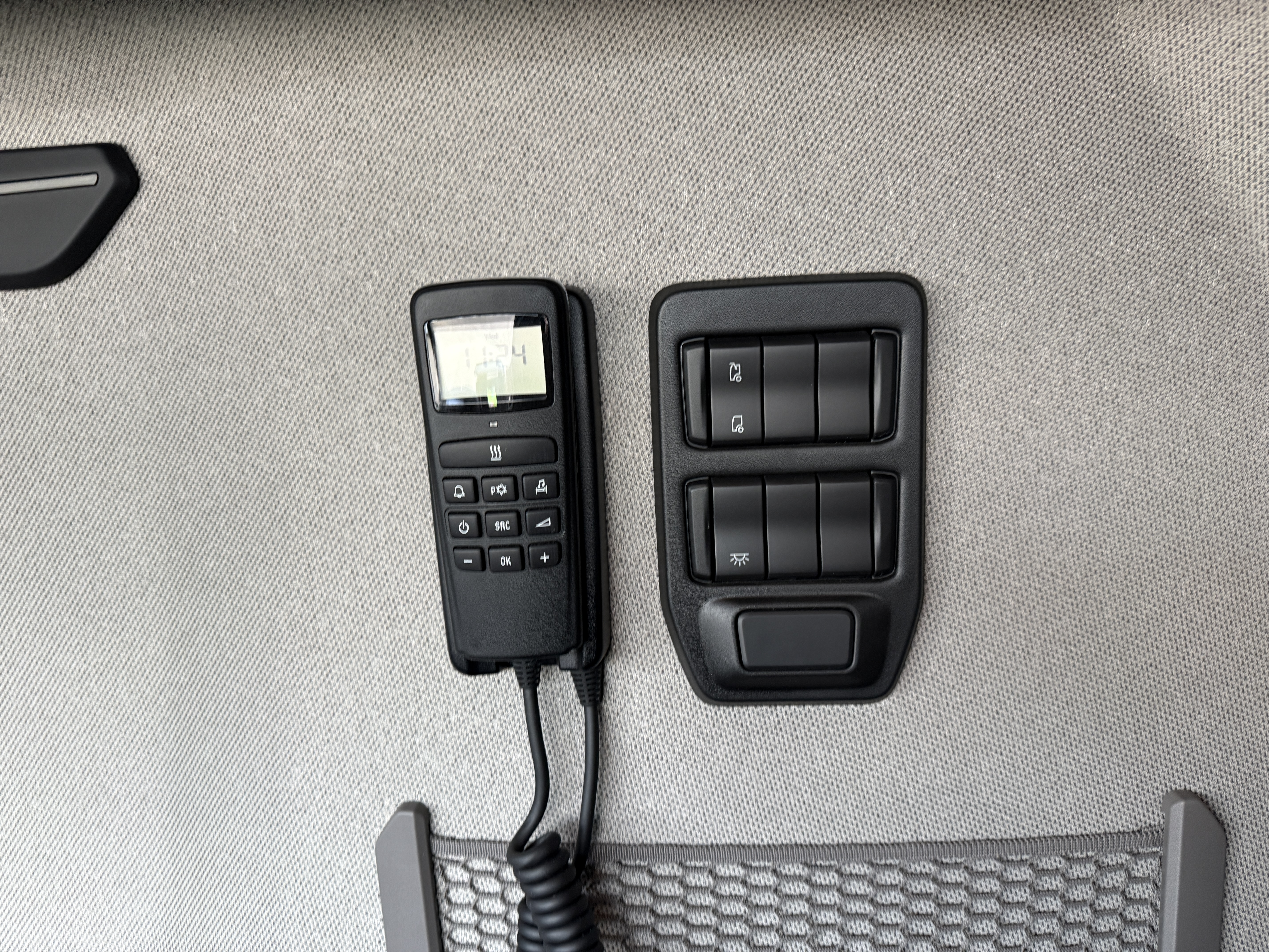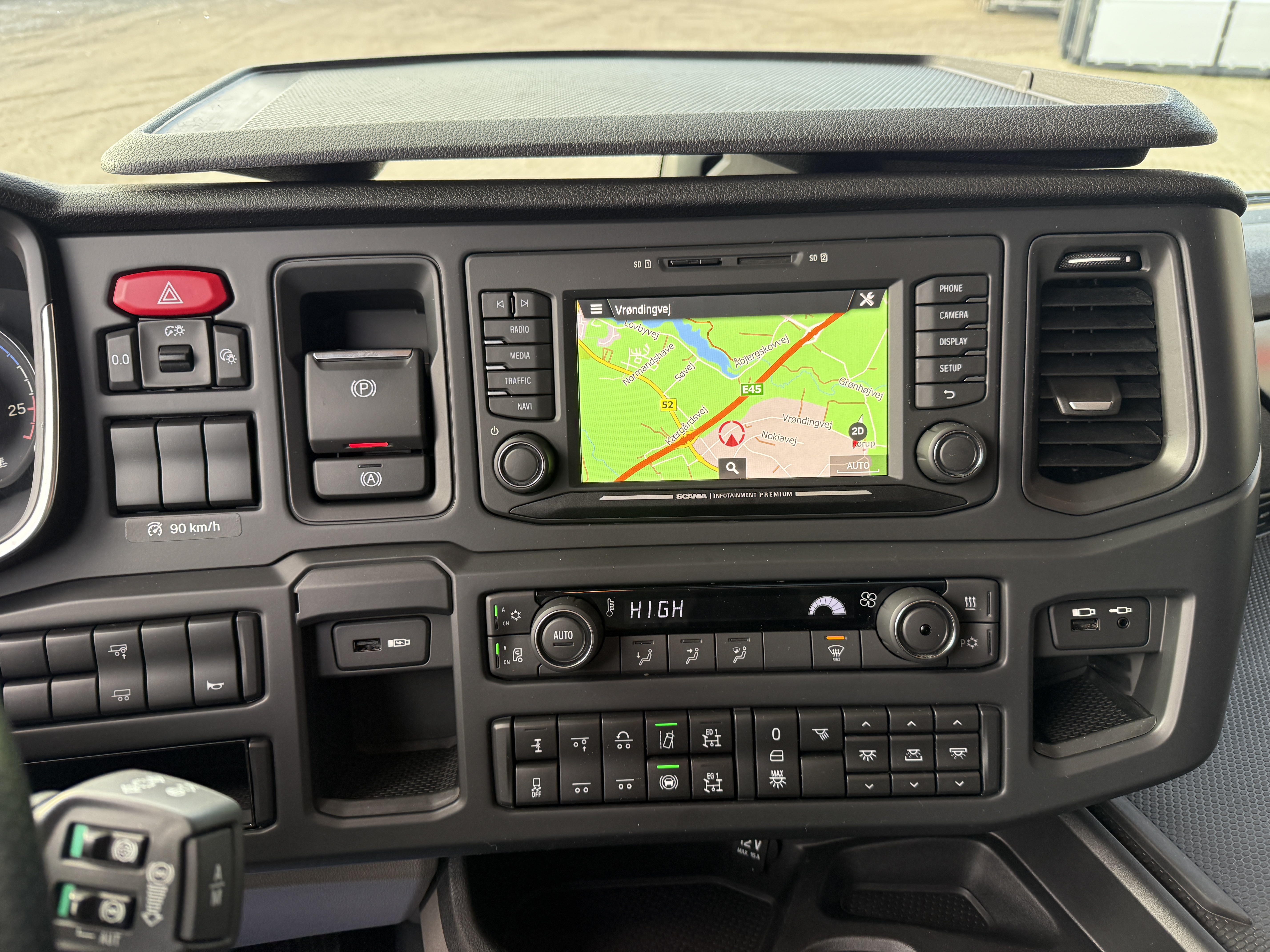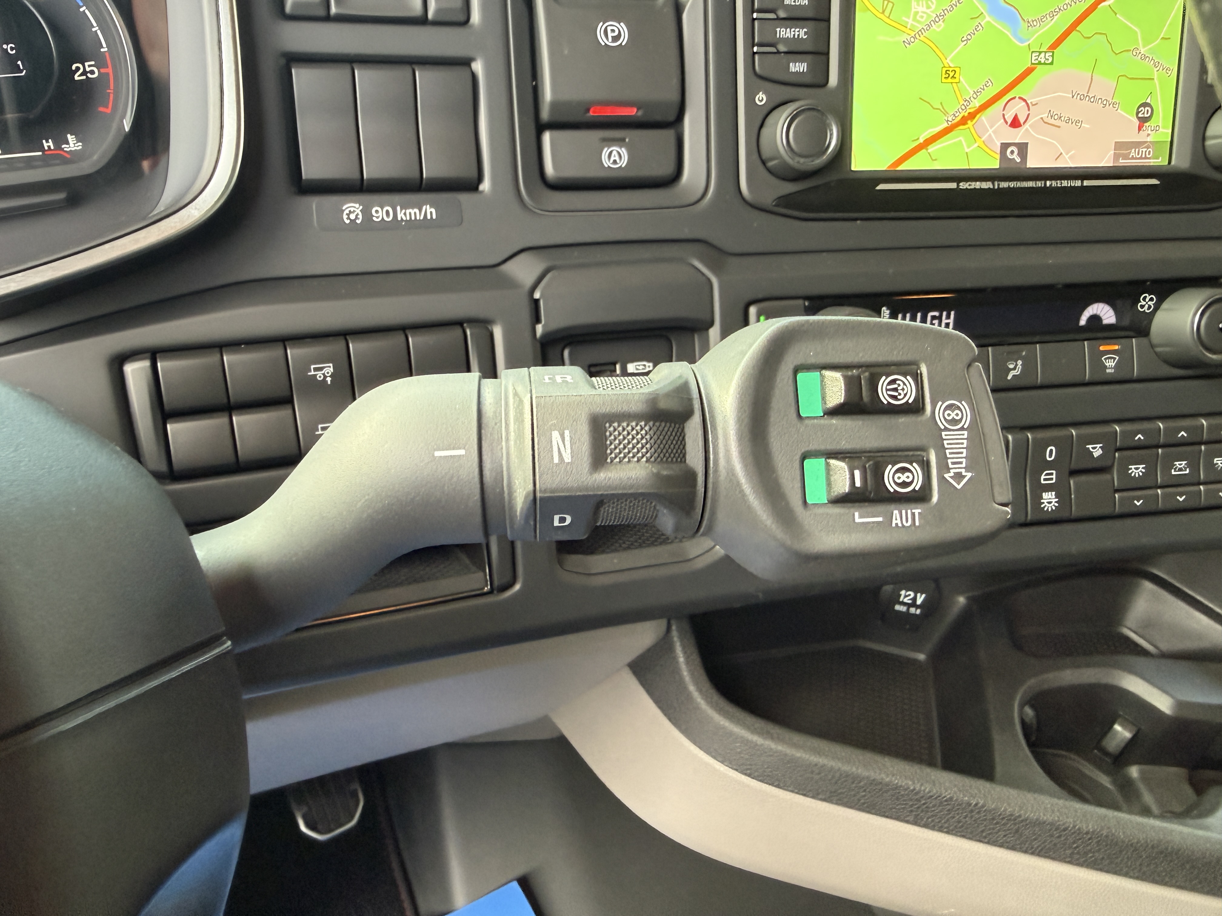 Trækkeren har flere tekniske og komfortmæssige funktioner, herunder Scania aircooler, automatisk klimaanlæg, aircondition og et køleskab. Kabinen er udstyret med lædersæder, og førersædet har både varme og ventilation. Navigationssystemet er integreret, og der er installeret adaptiv fartpilot, ACC, sporassistent og lastindikator.