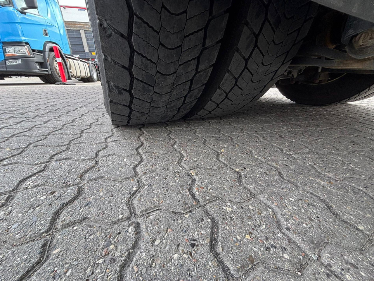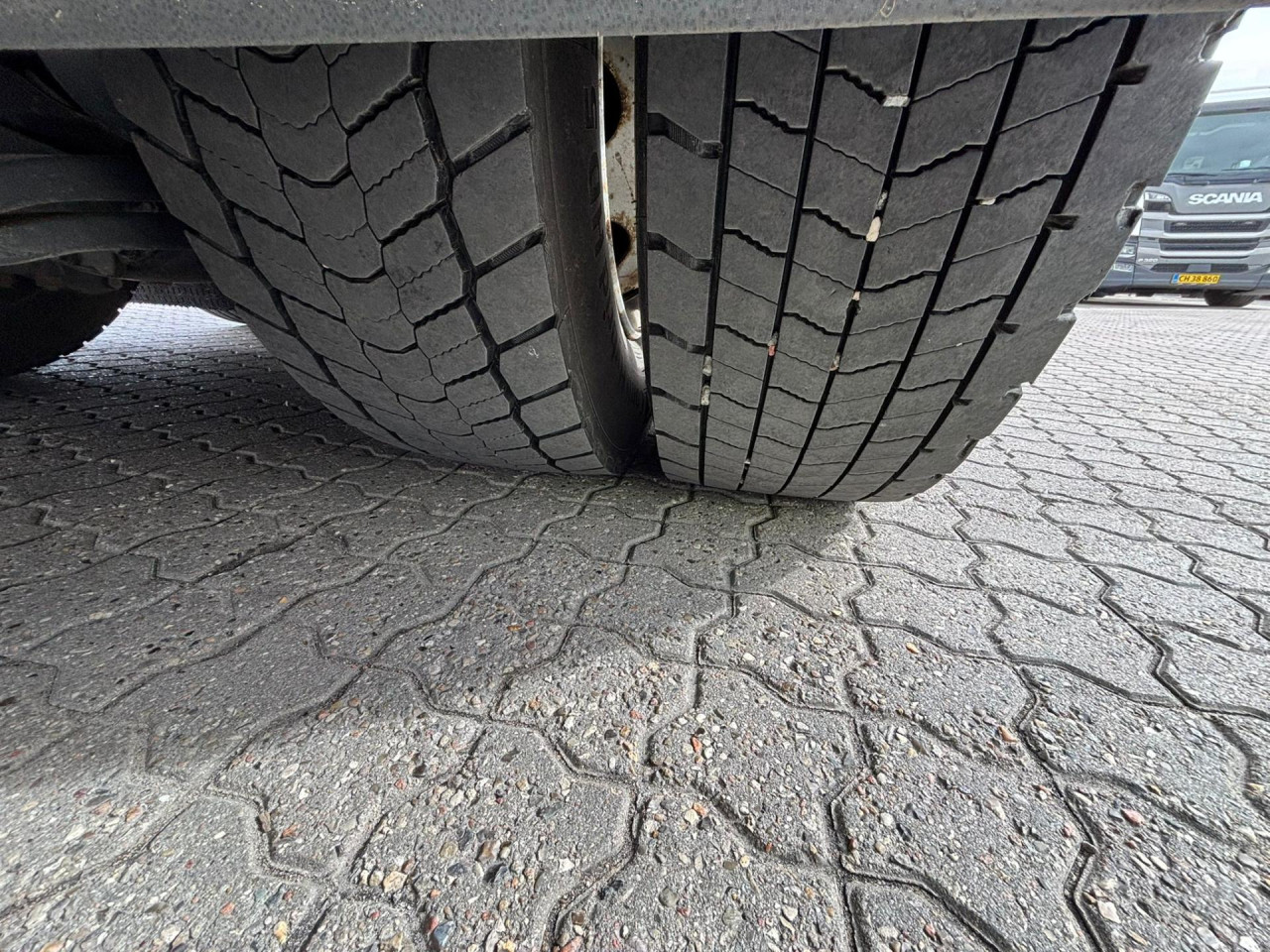 1. Achse: 385/55 R22.5, Profildybde: 6 mm / 6 mm, 2. Achse: 315/70 R22.5, Profildybde: 5 mm / 5 mm, 3. Achse: 385/55 R22.5, Profildybde: 5 mm / 5 mm
