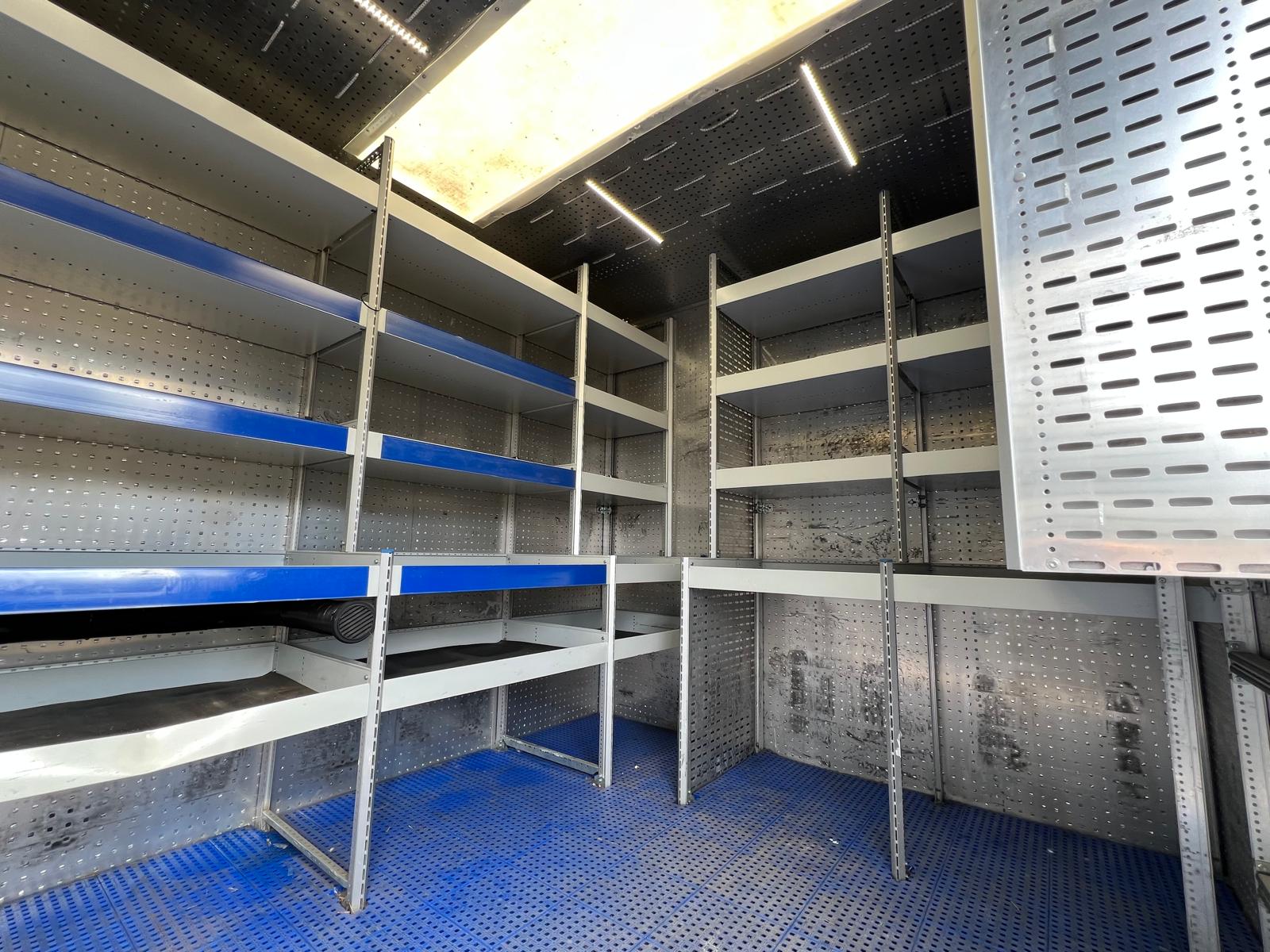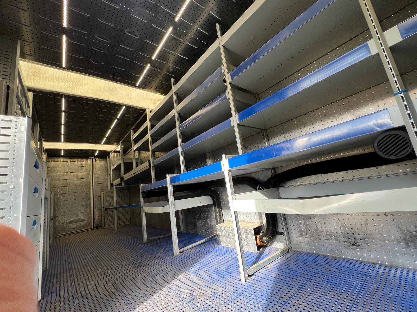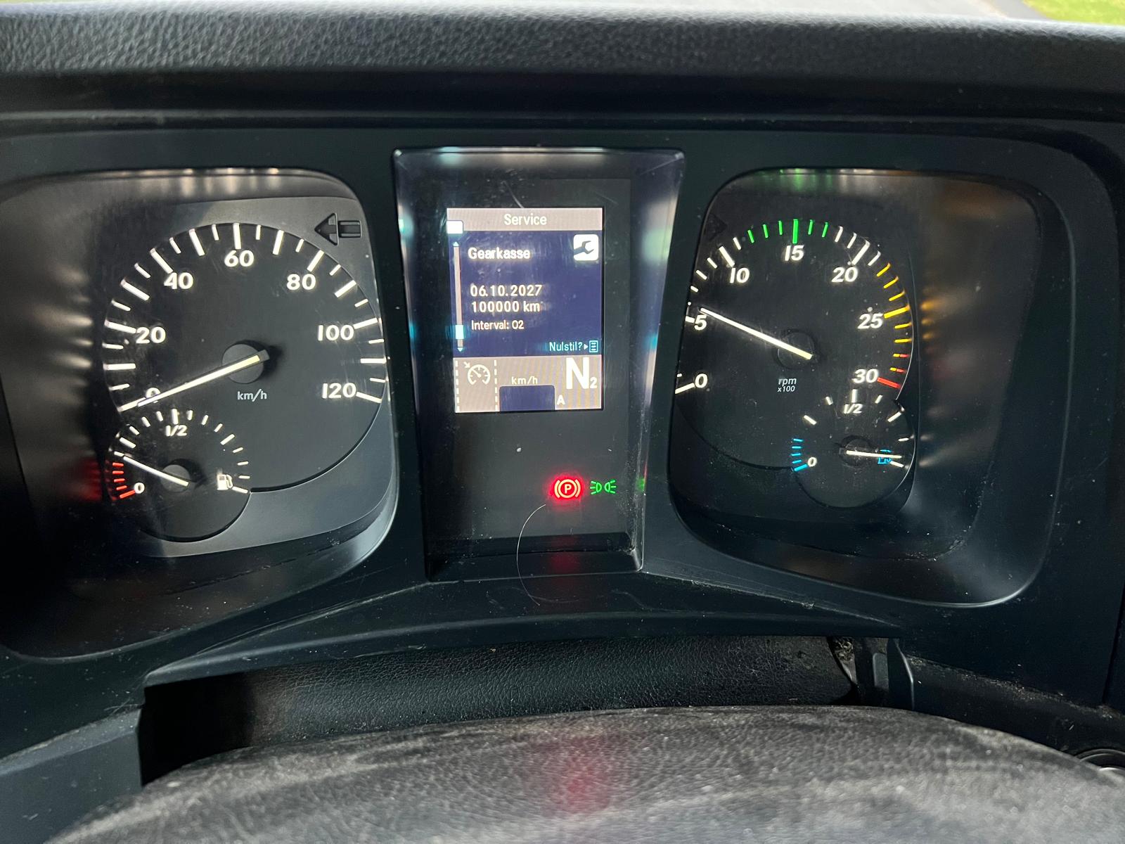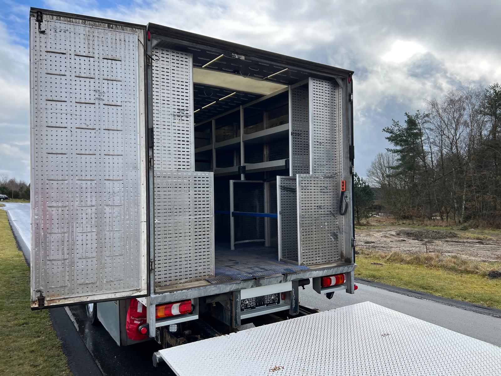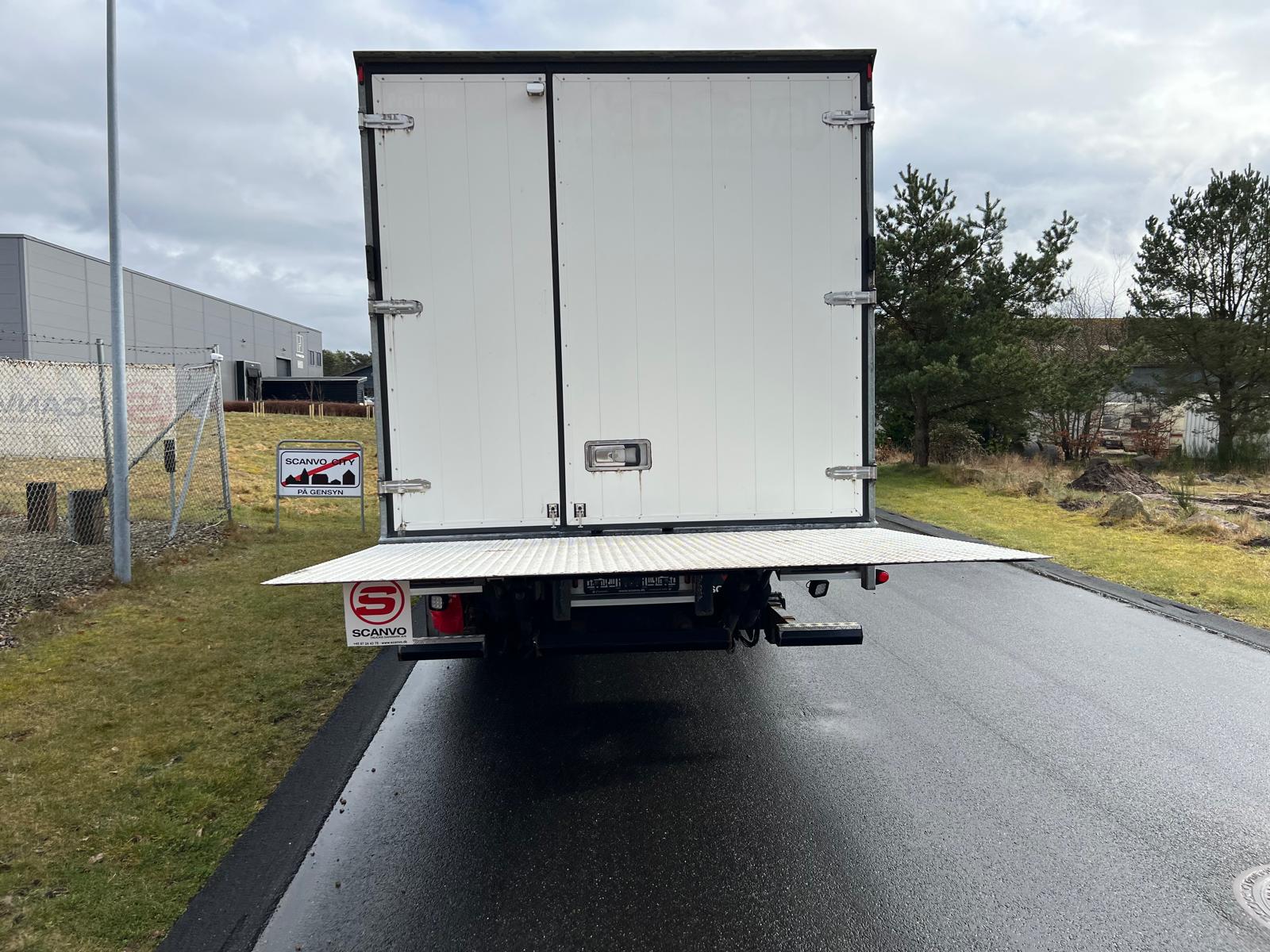 Alu. kasse med følgende indvendige mål: L 8400 x B 2460 x H 2320 mm - Ladbund højde 1180 mm - alu profil bund - dobbelt bagdøre - lys i kasse - højre sidedør B 1030 mm x H 1960 mm - varme anlæg i kassen - store værktøjskasser under chassis