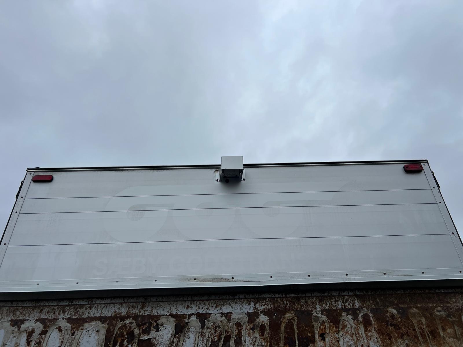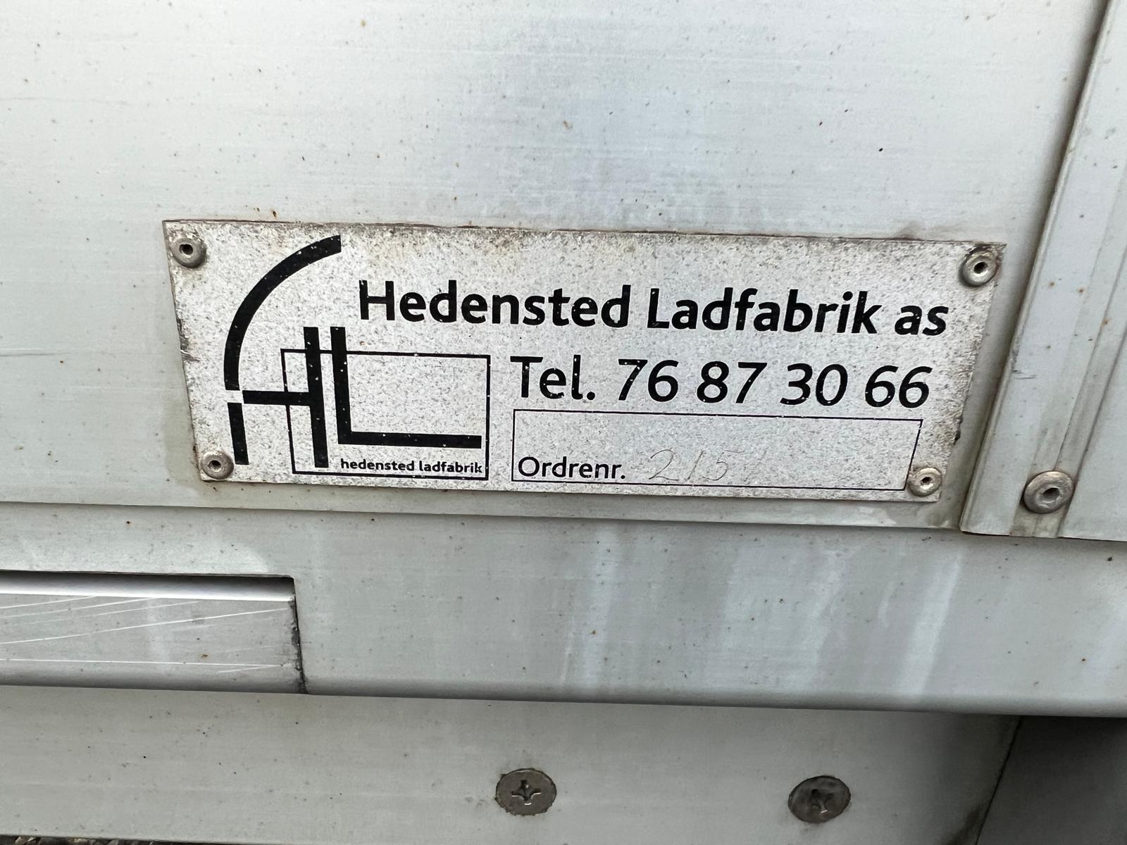 Alu gardin fragtlad fra Hedensted Ladfabrik 2151 - 20 pallers - indvendige mål: L 8100 x B 2480 x H 2800 mm (lysmål i bagrammen 2750 mm og 2650 mm i siden ) - 54m3 - presenning tag - sidedør B 1000 x H 2000 mm venstre side - pakkelem i højre side - alu. profil plankebund - LED lys i kassen - LED lygter under lad + i bag - værktøjskasse