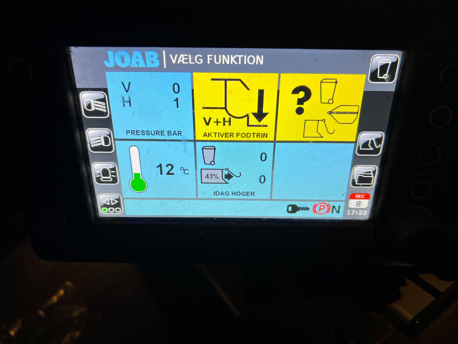lift til mini containere 770 ltr - anlægget drives via motor kraftudtag med display og betjenings info fra førerhuset - værktøjskasse