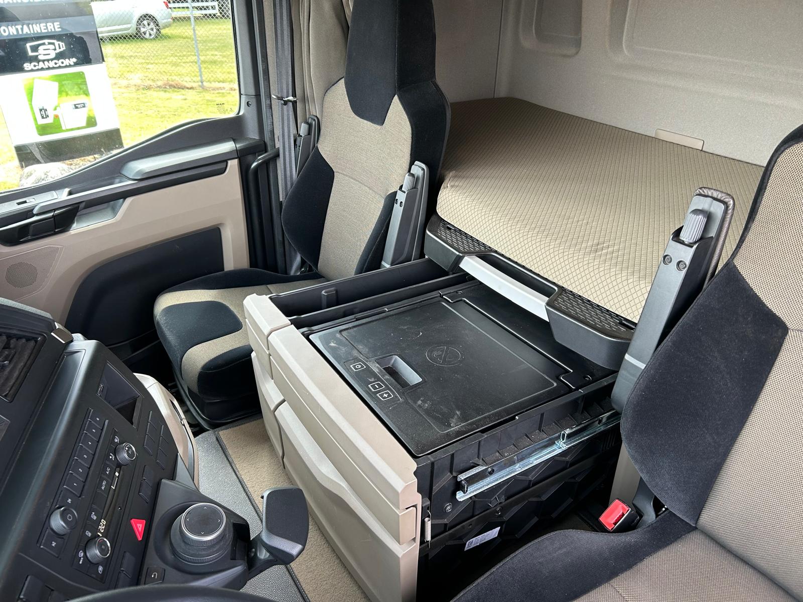 Sovekabine førerhus med højt tag - luft affjedret førerhus - 1 køje - klima anlæg - oliefyr - overskabe på bagvæg - køleskab under køjen  - inverter 24/220 volt - Bliz lys - bak kamera - 2 LED lygter i trinkasse + 2 stk. under førerhus i for + 2 stk. bag
