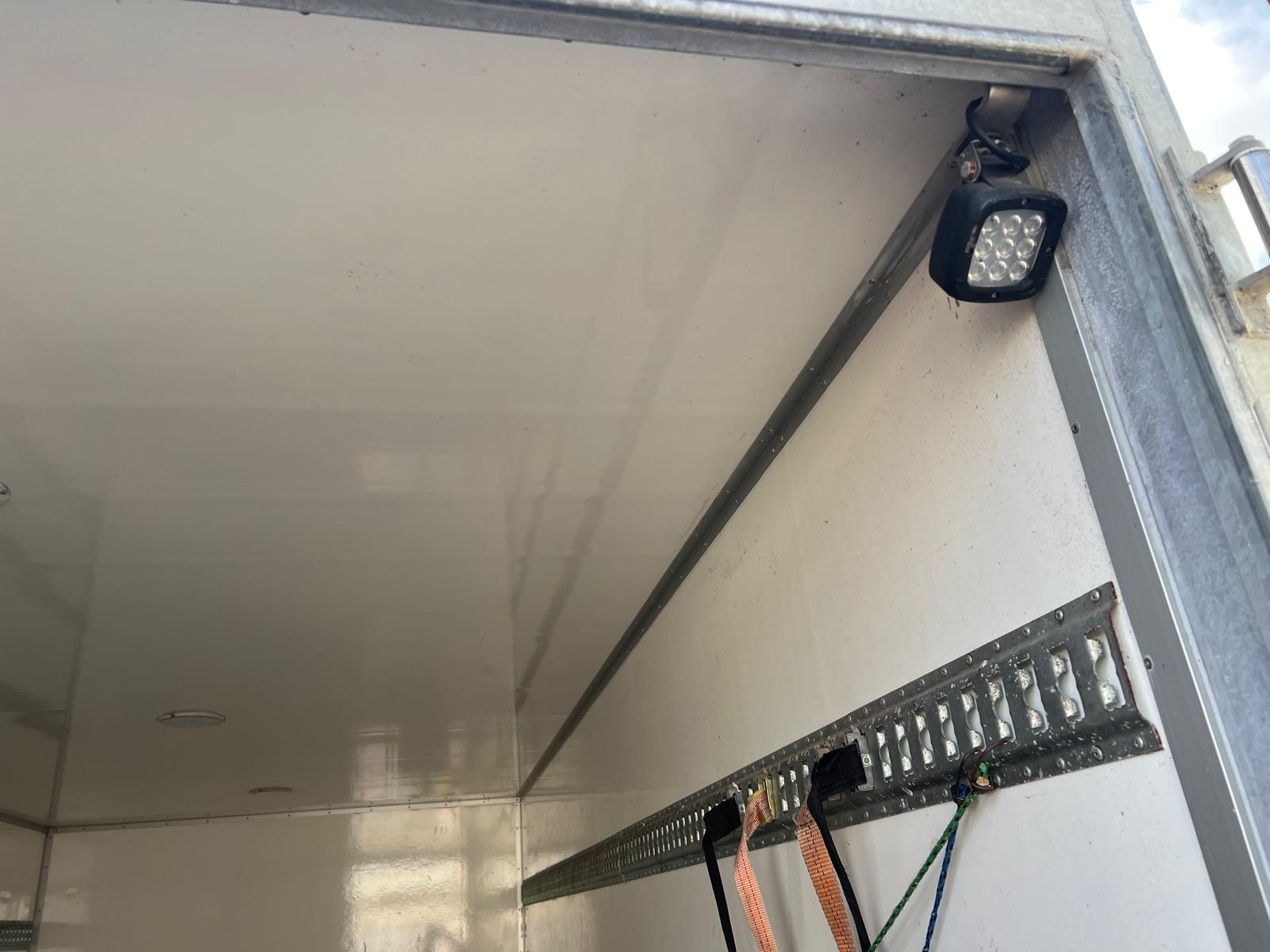 tilhørende 2 stk. glasfiber veksellads kasse  30m3 - Indvendige ladmål L 5350 x H 2300 (lysmål 2250 mm)  x B 2440 mm - bagdøre - 3 binde rækker - finer ladbund - LED lys i taget - læsse højde 1020 mm - container låse højde 880 mm