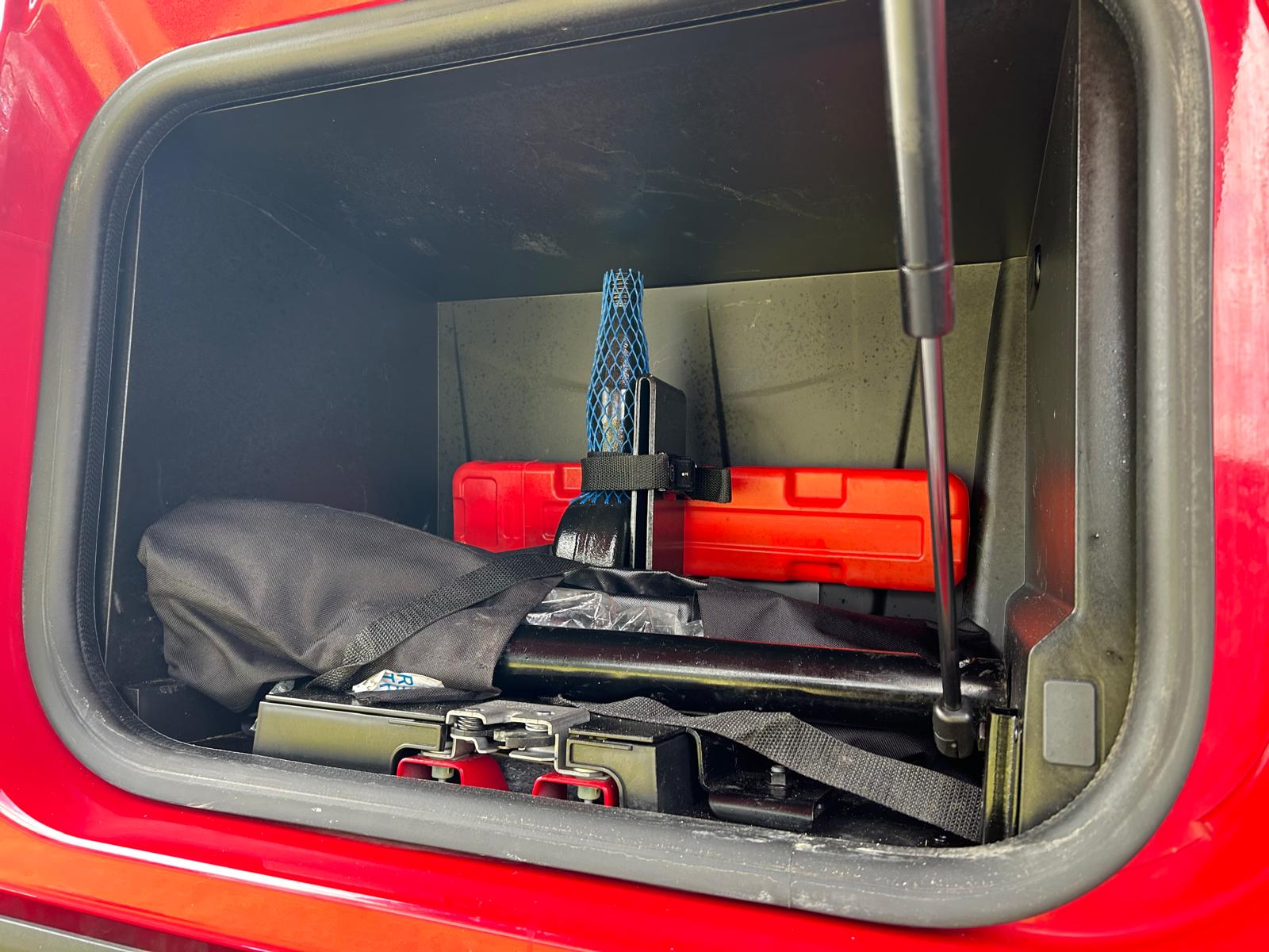 2 x LED lygter bag i + trinkasse - kamera ved træk - 2 stk. rotorblink - walkie - radio - mv.  RAL 3003 fabrikslakeret førerhus