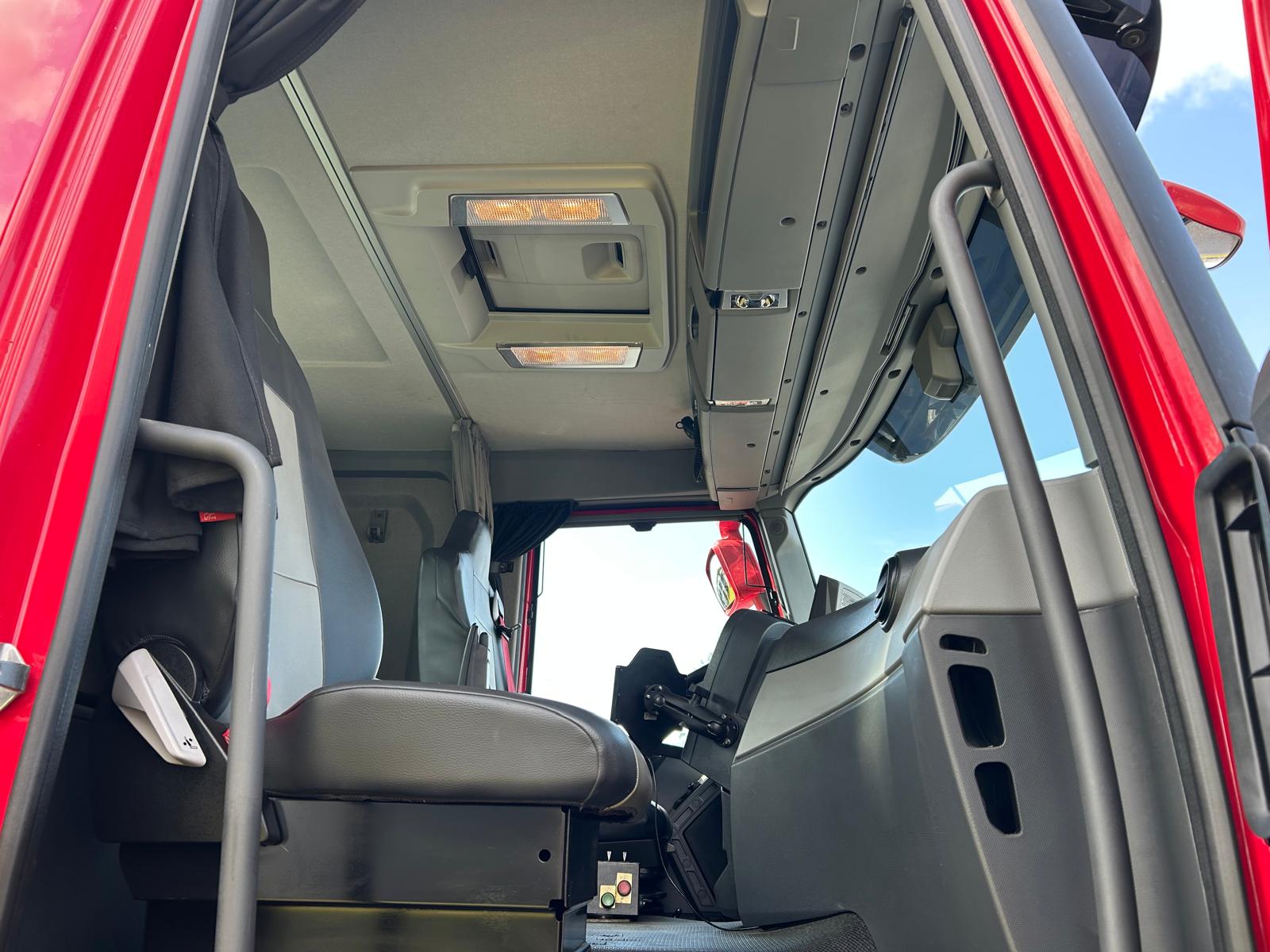 Sovekabine kabine med lav tag - 1 køje - lædersæder - klimaanlæg - lysskilt på taget - arbejdslygte bag ved førerhus