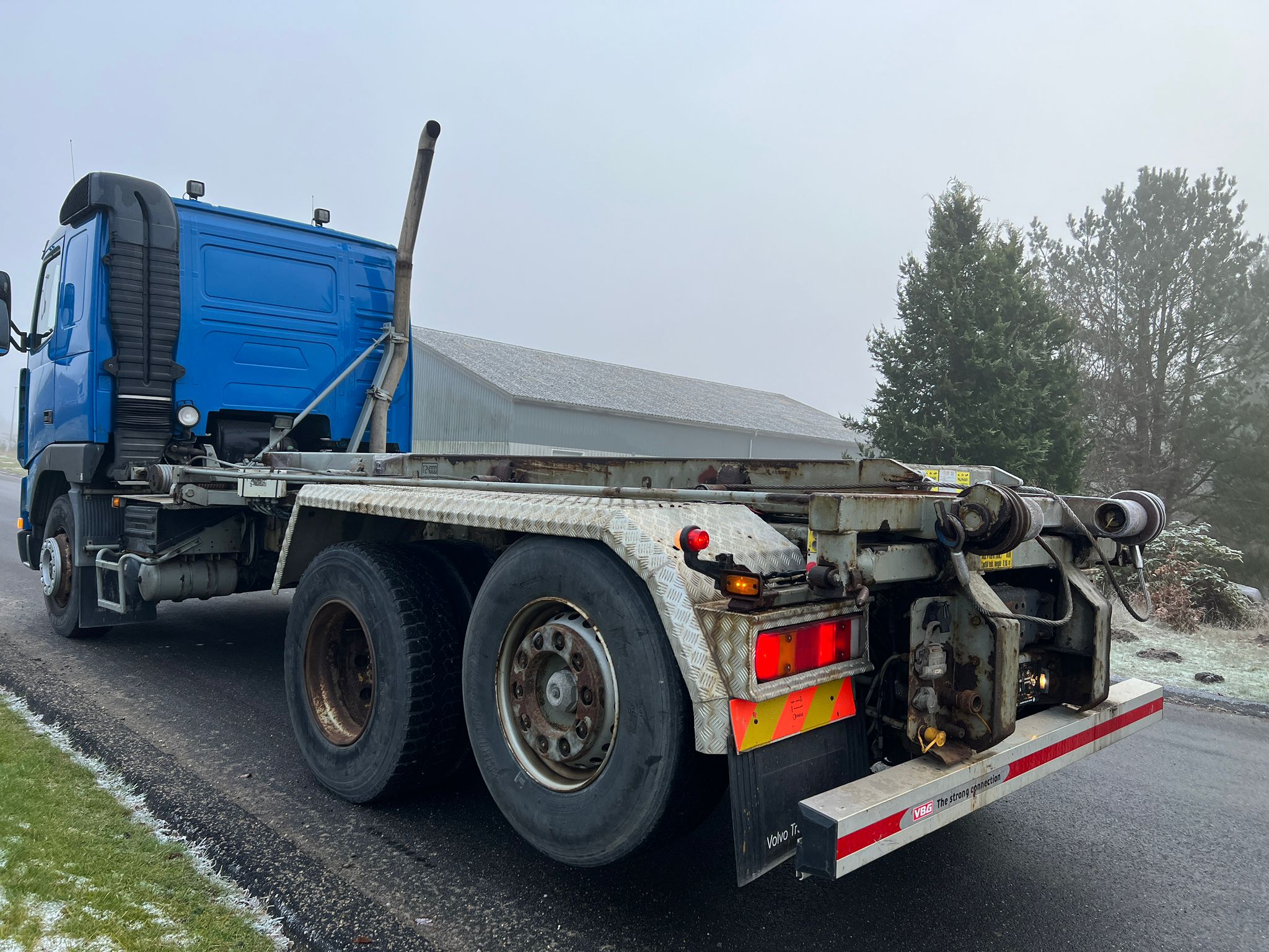 Volvo FH12-420HK 6x2 med Wirehejs, fuld luftaffjedring, manuel gear 12 trin med range og split, gl. type fartskriver, udstyret med pedaler i højre side til øvelseskørsel.