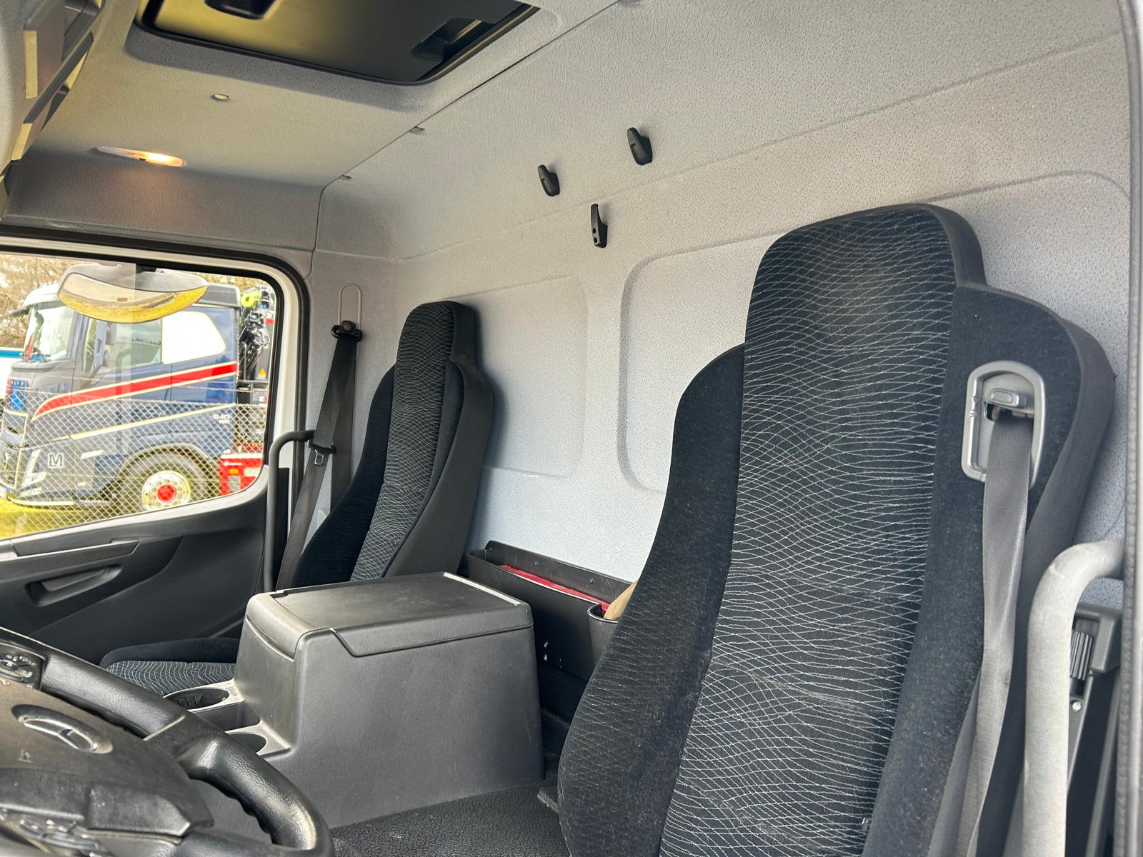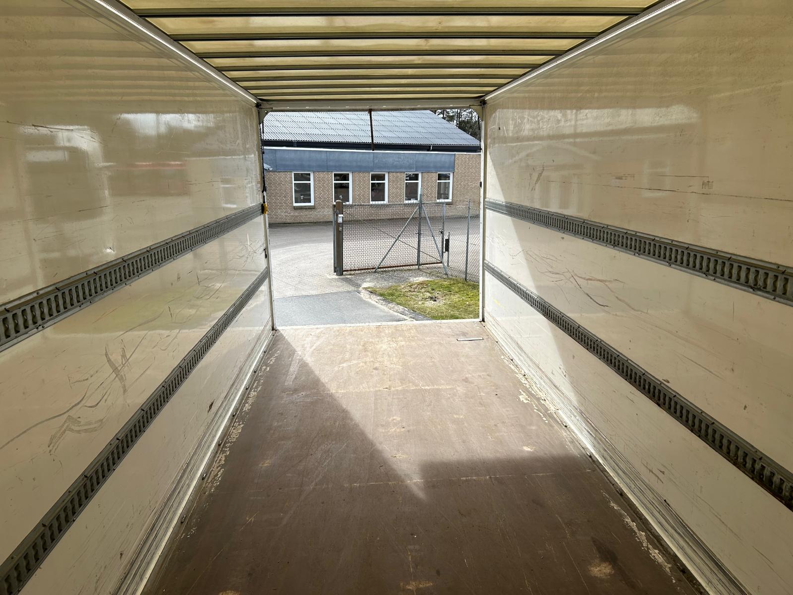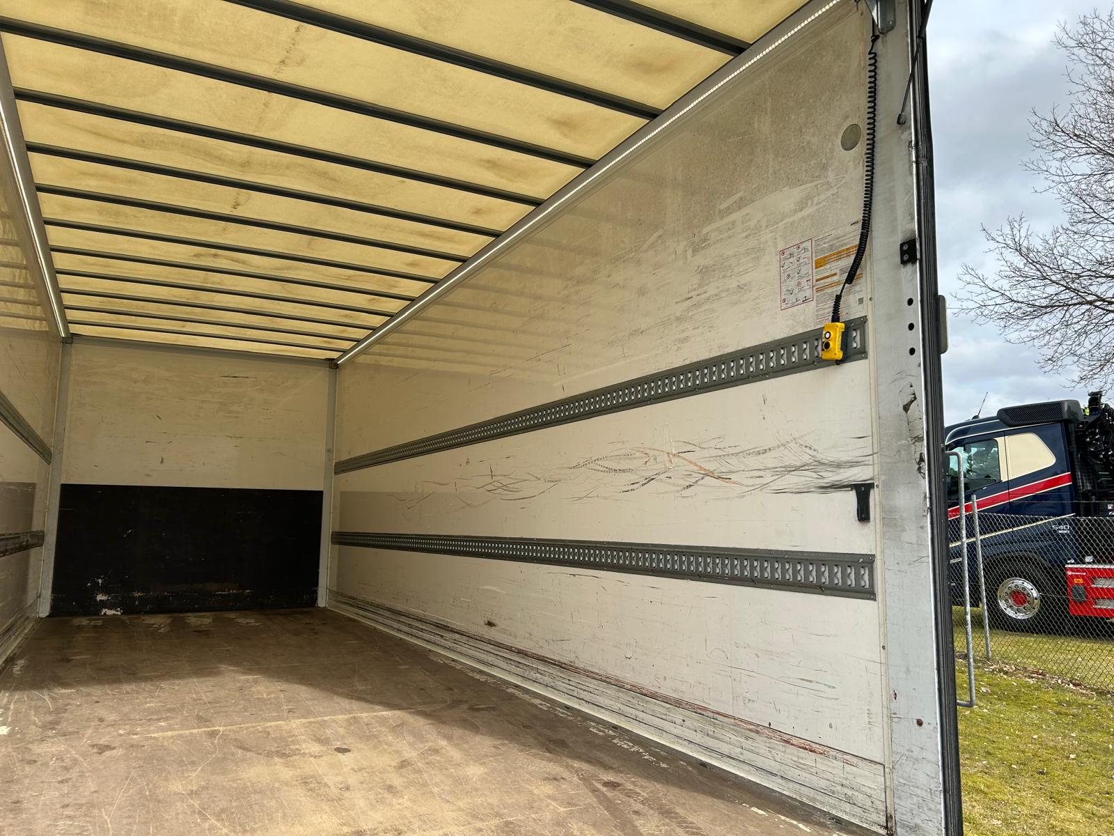 - 2 binderækker - 2 x 13 stk. nedfældet surrings ringe i lad kant -- rumindhold 44 m3 - LED lysbånd i begge sider langs taget