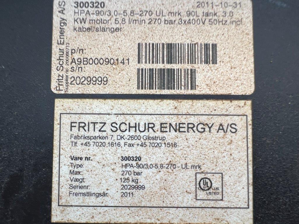 Giver op til ca 270 BAR tryk - tryk + retur - med kuglehane til flow ventil - tilhørende 1/2" slange som er retur + 3/8" slange til tryk siden begge slanger har en længde ca 3,5 mtr - flere af stationerne er sat til 210 - 230 BAR tryk