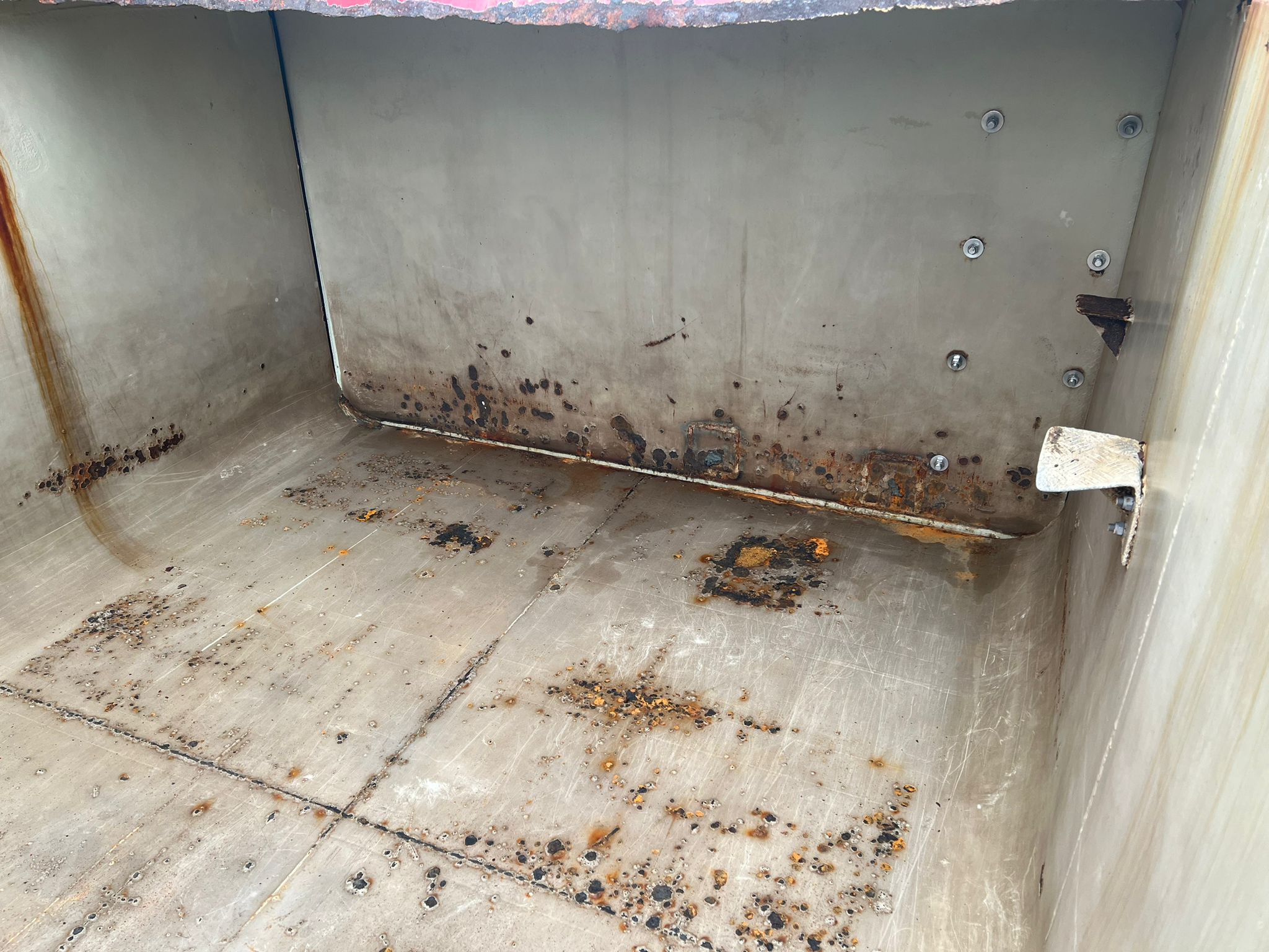 Opbygget med følgende indv. mål: L 6000 x B 2380 x H 1400 mm (Indv. længde i top: 4900 mm pga. flade hvor låg lægger)