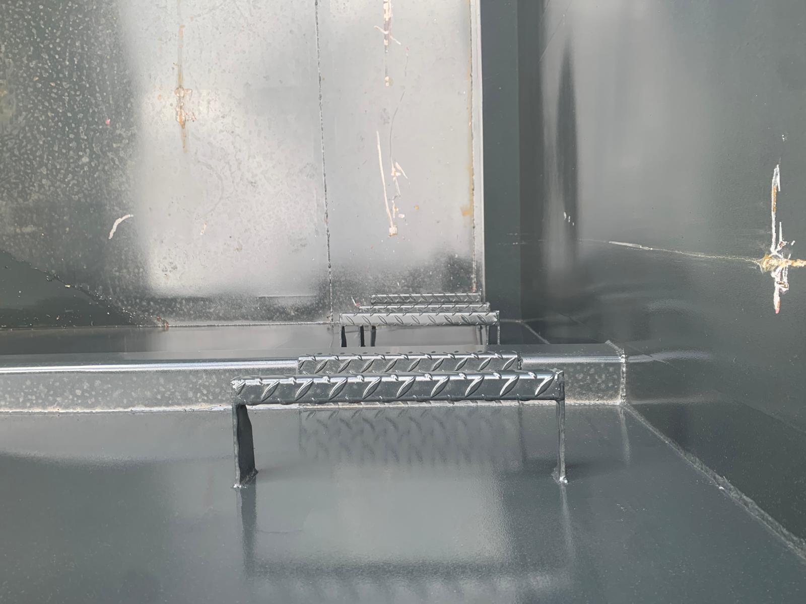 Lakeret i RAL 7021 Sortgrå (Farve kan ændres frem til 2 uger før levering) - 750 mm. i vange afstand - kraftig surrings stang lang yderside - fodtrin på forsmæk ind- og udvendig.