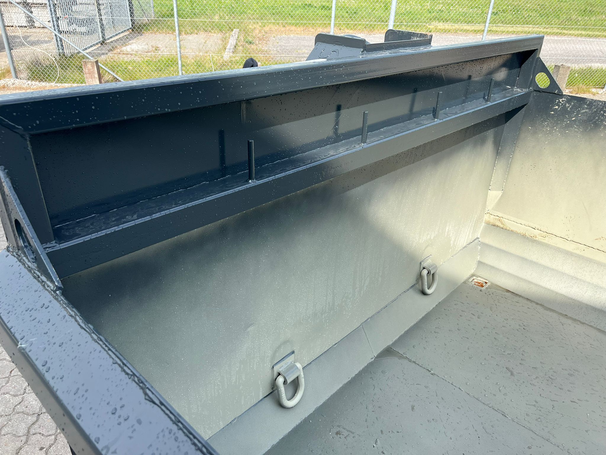 4 mm HARDOX 450 bund / 3 mm HARDOX 450 sider - Optrækstårn til krog og wirehejs - Stige på forsmæk - Sideruller