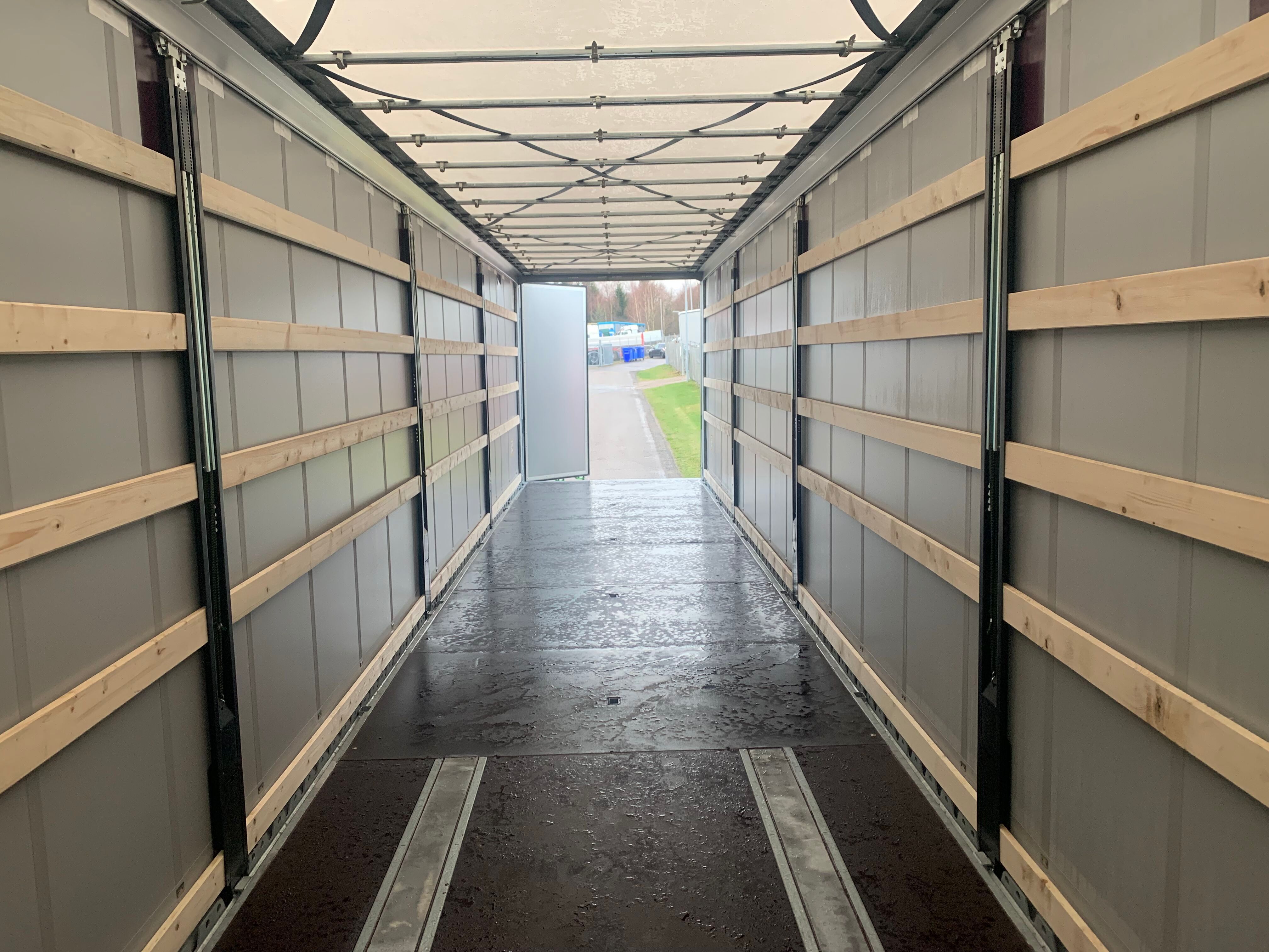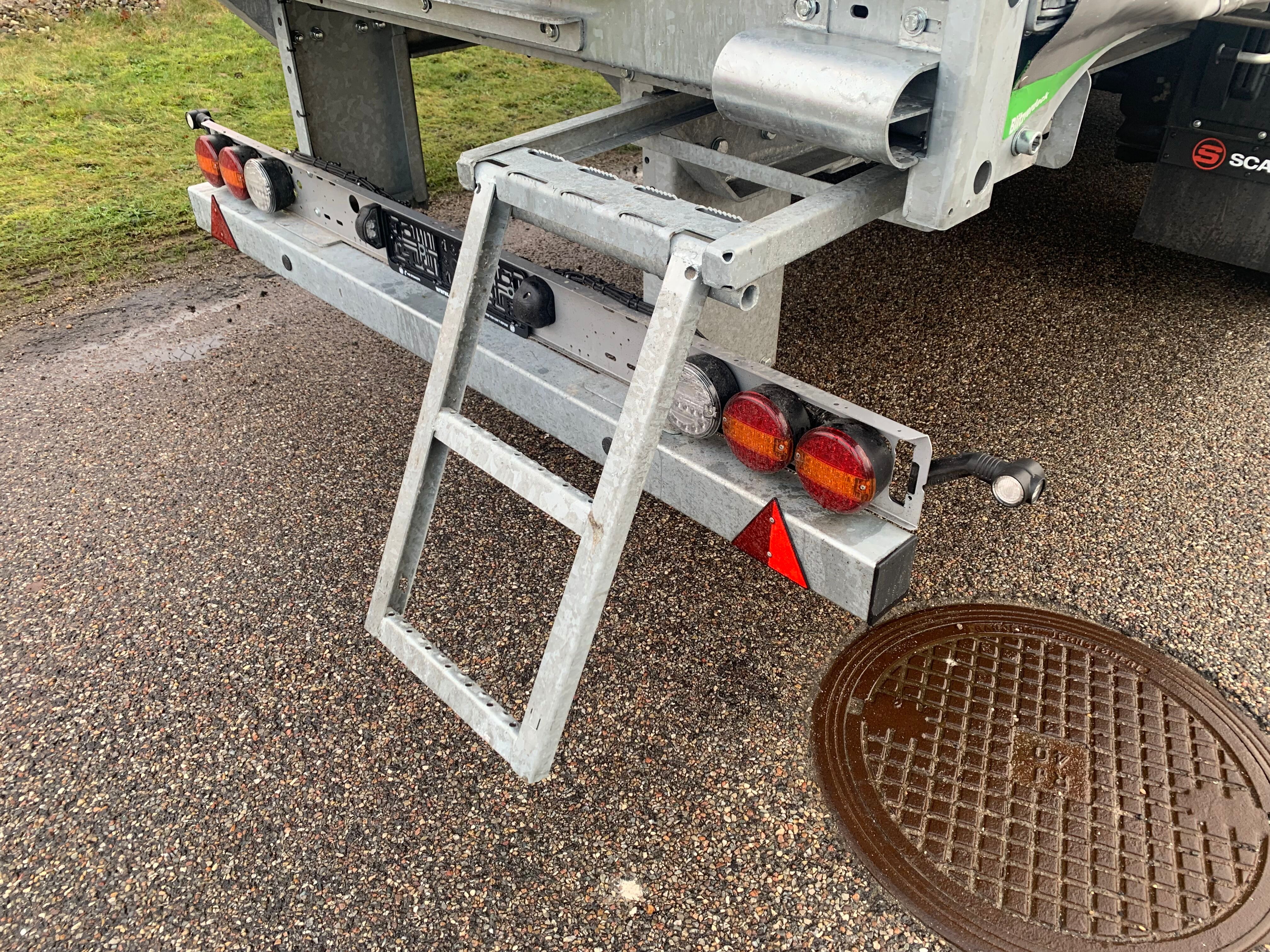 18.000 kg kingpin og lang svanehals som giver mere frigang til bagskærme på trækkeren - XL-godkendelse EN12642XL  med RAL 9006 sølv gardiner  - 3 skydestolper pr. side med 5 planker imellem hver - kæpstokke huller i midten samt i kantskinnerne - udtræksbar stige bagerst - Loadlock profil monteret i kantskinne med utalligere surrings huller langs hele kantskinnen inkl. truckværn - skydetag - truckværn ved bunden af forvæggen som beskytter mod pallegafler - SAF aksler med tromlebremser - rustfri værktøjskasse - 4 stk færgekroge under chassis - LED bag lygter + baklygter og slinger lygter - galvaniseret chassis ramme - og meget mere.  Leveres med sølv metallic lakeret bagdøre - RAL 9006 sølv gardin sider