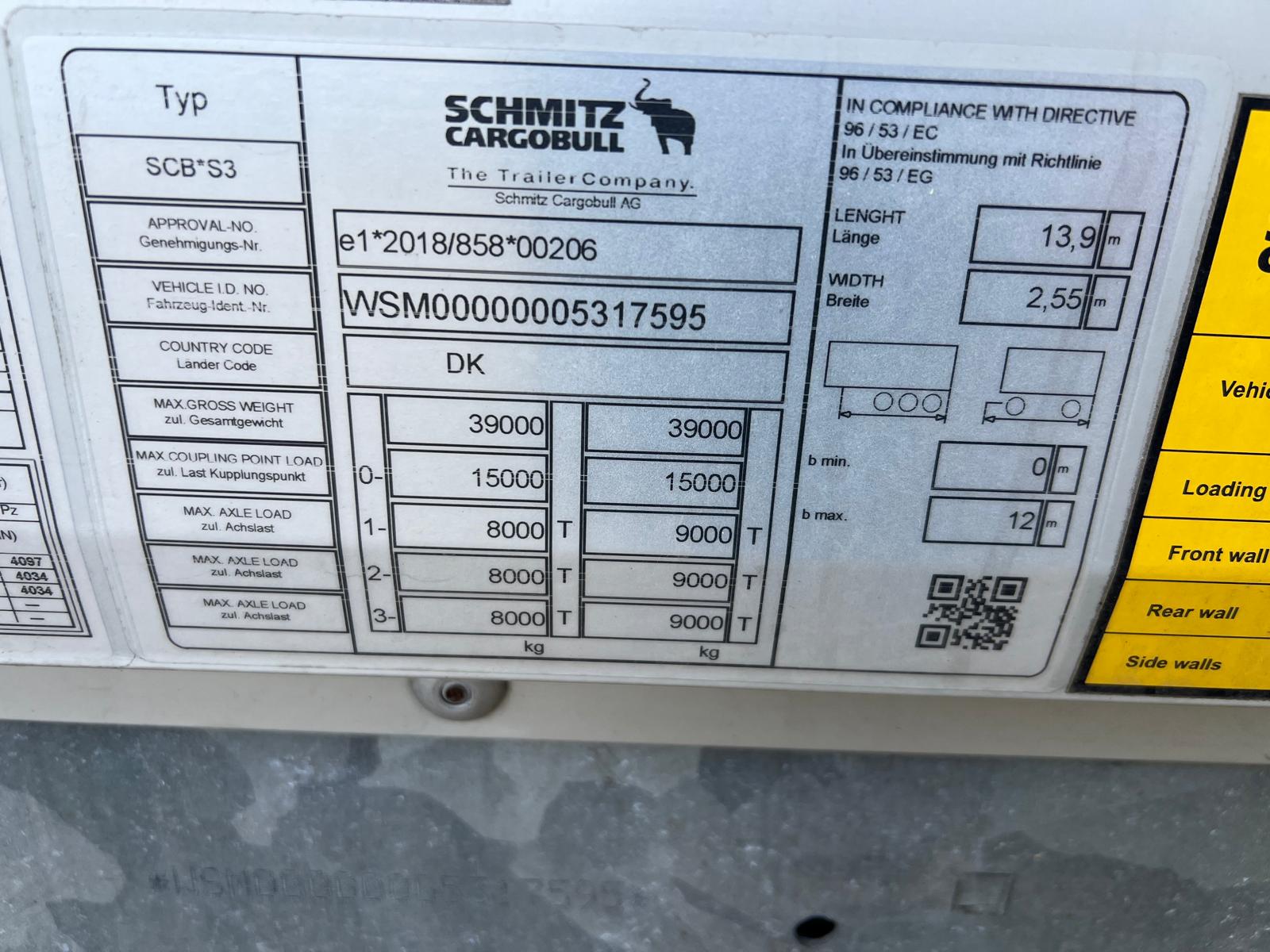 Schmitz bokstrailer med dobbeltstock - kassen er EN 12642 - XL godkendt