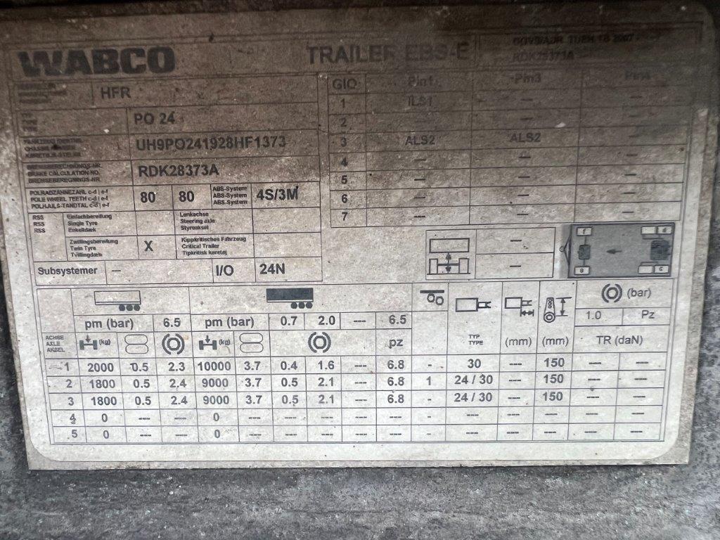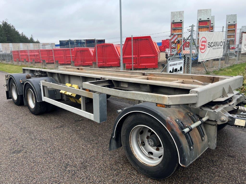 BPW aksler - Luftaffjedring - Tromlebremser - Akselløft på 2. aksel - Værktøjskasse med indbygget hæve/sænke ventiler til luftaffjedringen - Galvaniseret chassisramme - Færgekroge monteret på chassis - Forskydelig trækstang med 57 mm trækøje - KBL = min 8400 mm til 8900 mm - Bemærk egenvægt på kun 4960 kg