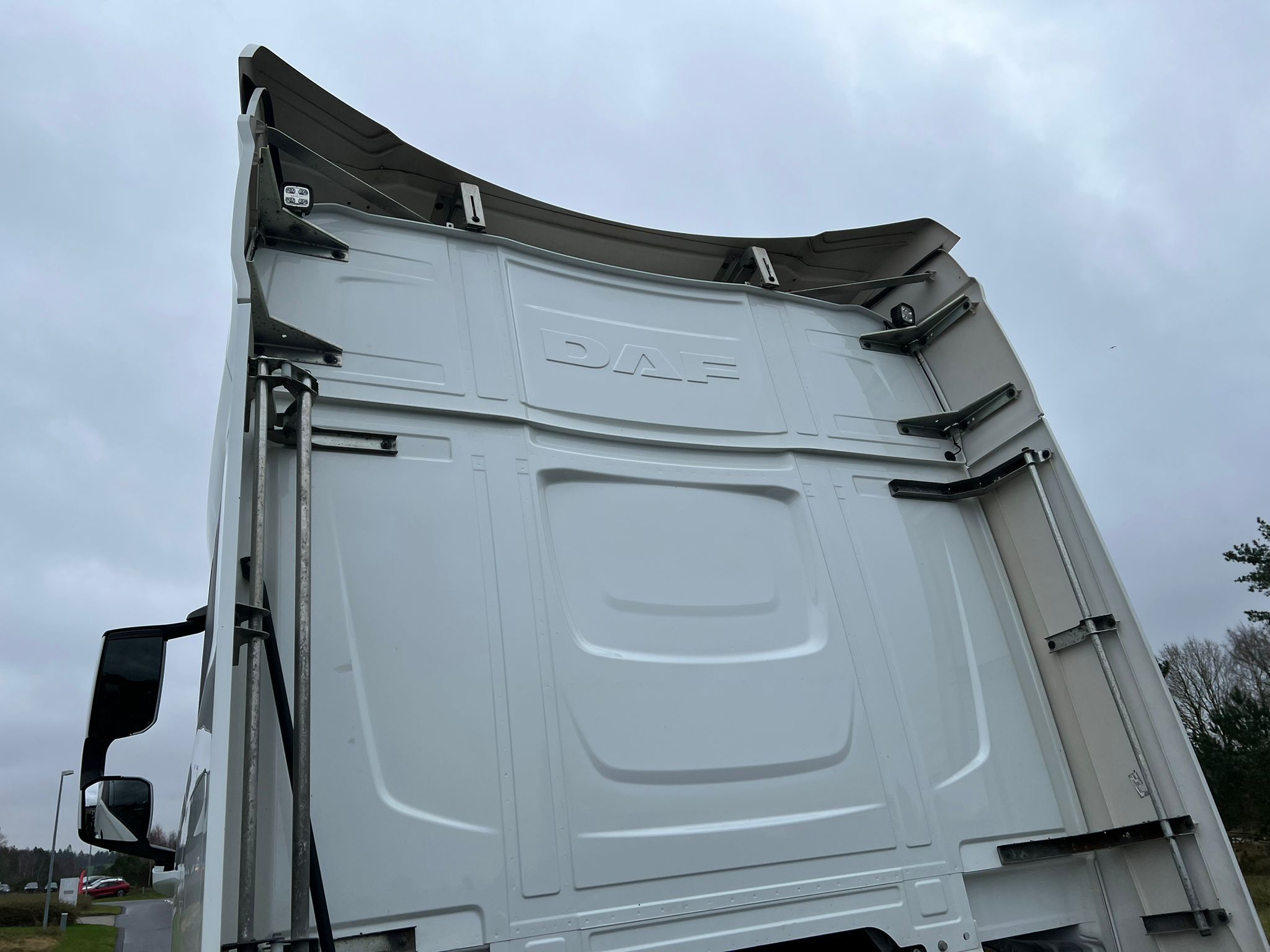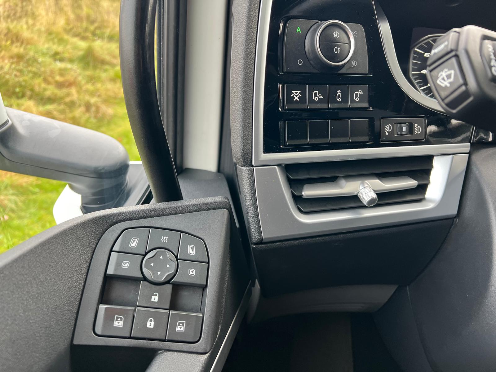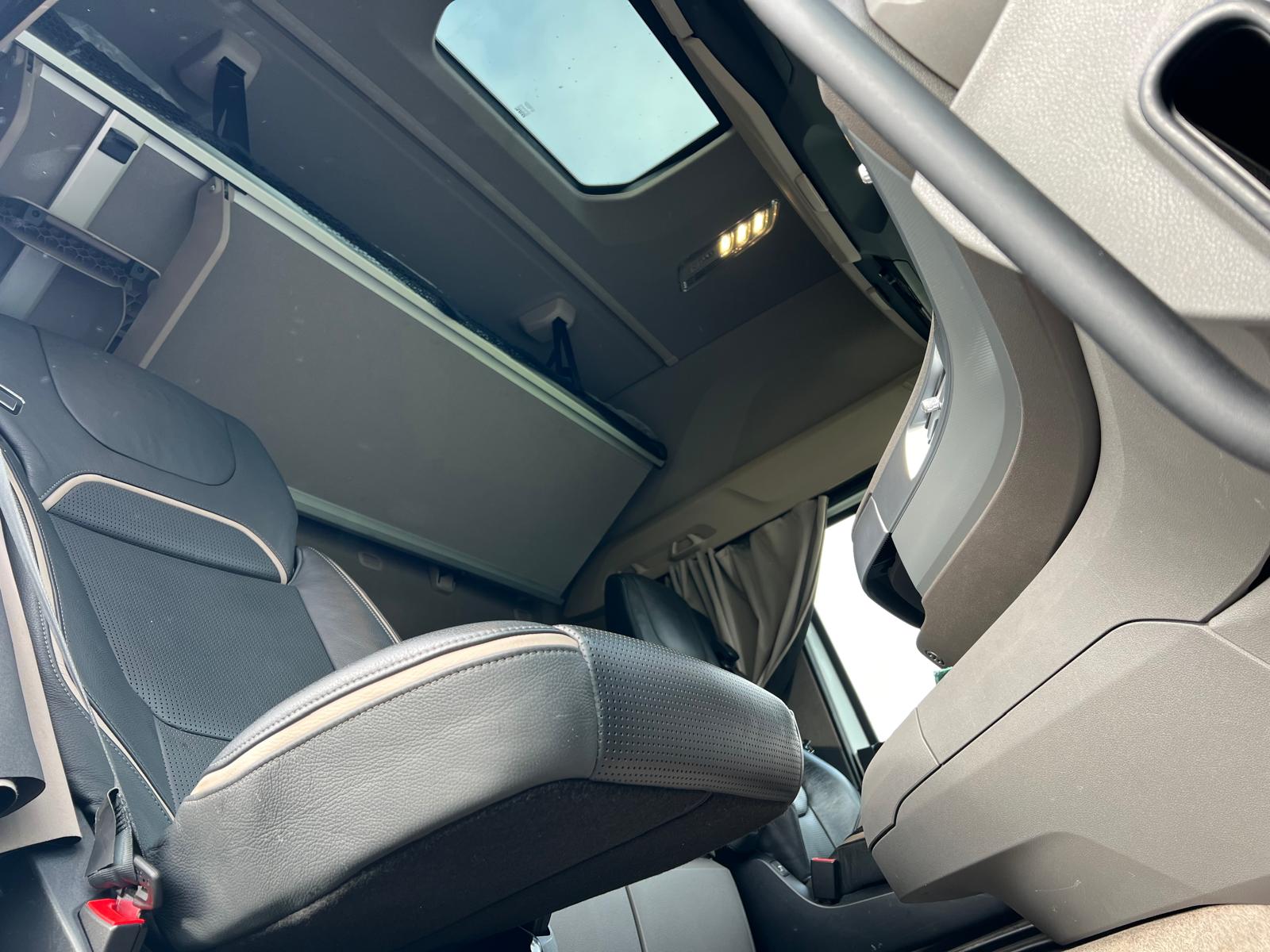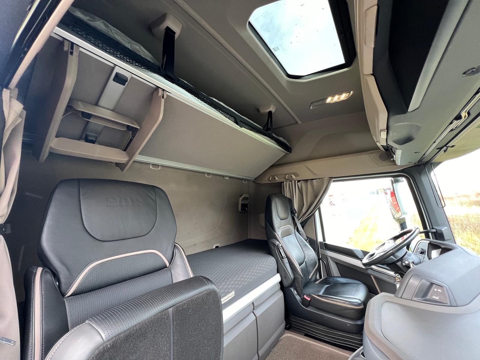 XF cab high - motor/kabinevarmer - klimaanlæg - 2 køjer - køleskab - læder sæder - LED lygter - LED Skylights i taget - lamineret vinduer - førerhus lakering i E1980 Crystal White