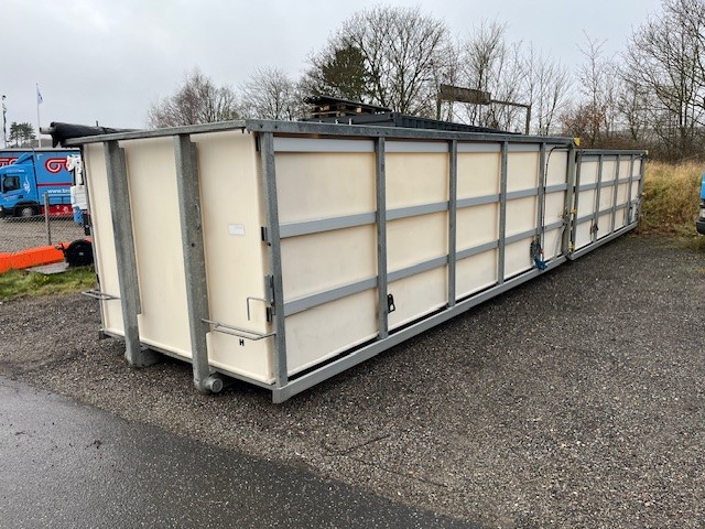 1 stk. 23,5 m3 (6 m. X 2,3 m. X 1,7 m.) samt 1 stk. 27 m3 (6,5 m. X 2,3 m. X 1,8 m.)