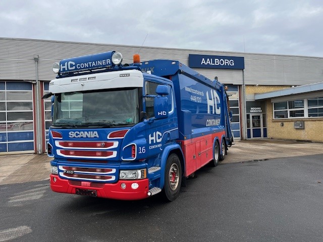 Skraldebil opbygget med Phoenix industri-komprimatorkasse med vejesystem og spil. Fuld luftaffjedret. Retarder. Drejbar bogie. Lædersæder. Køleskab mm.