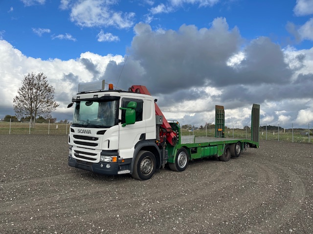 Scania P450 8X2*6 Knæklad + Kran HMF1820 – Machinetransporter