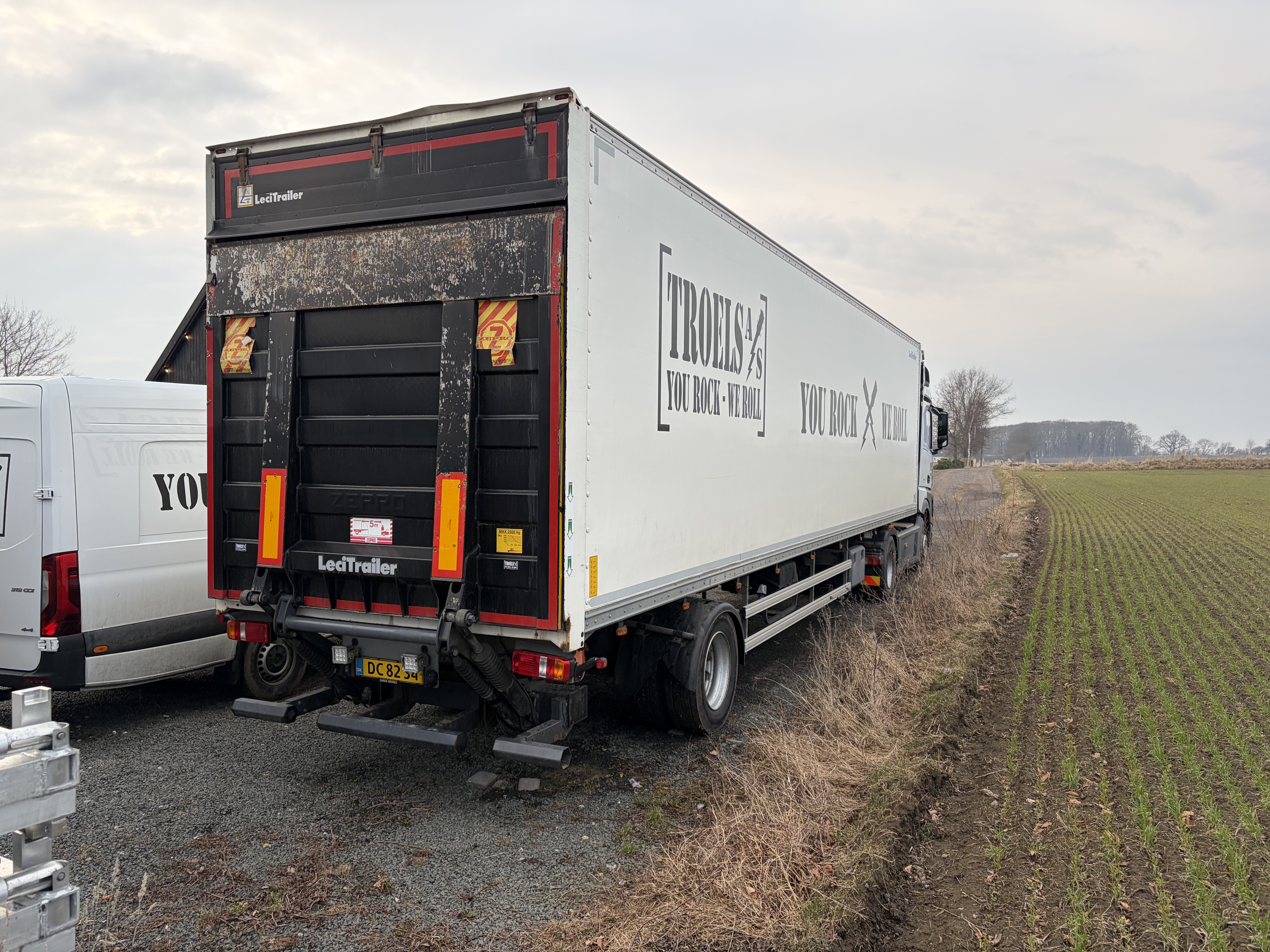 Fin trailer med batterier. 2 eurogrid rækker.